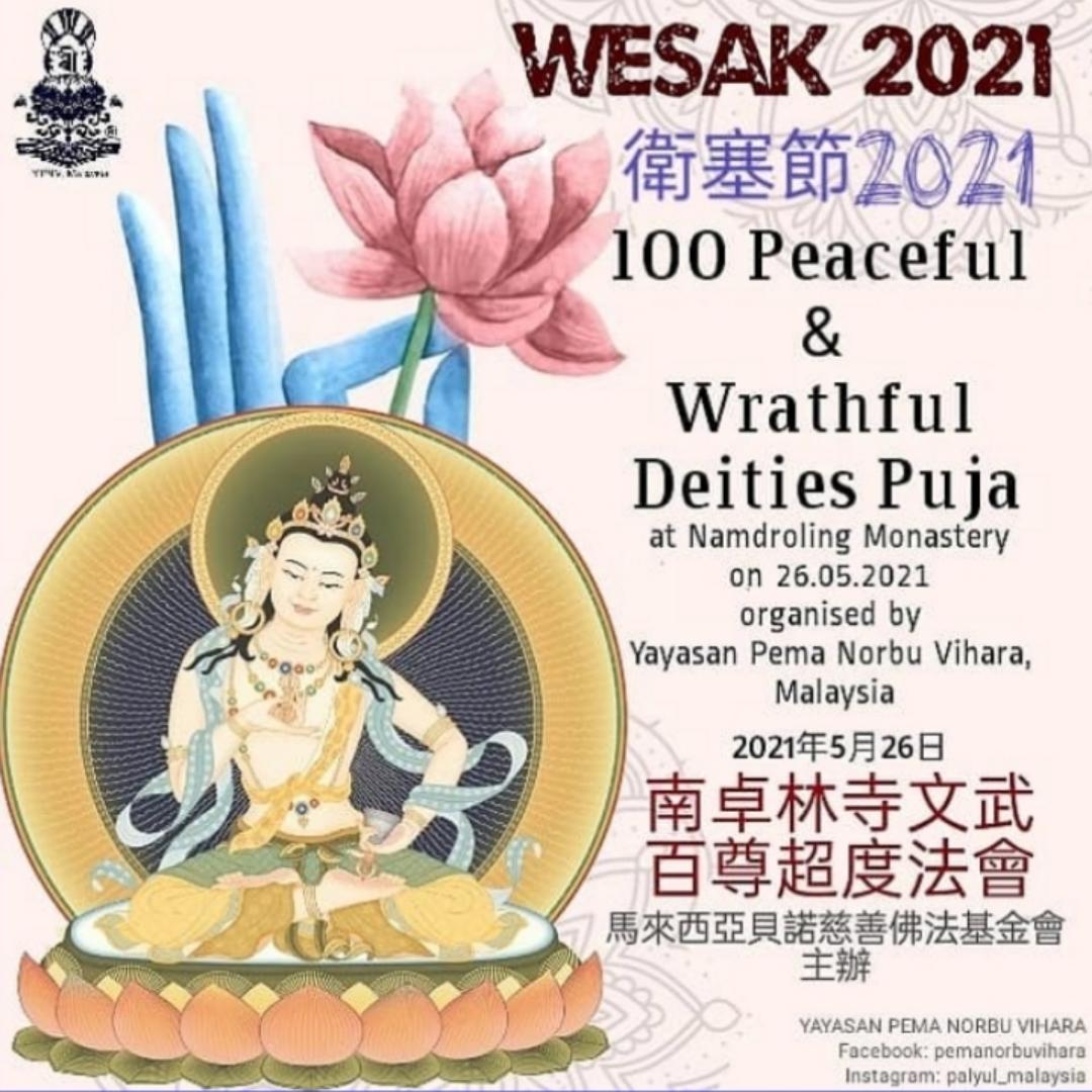 Therefore, YPNV is sponsoring a 100 Peaceful and Wrathful Deities Puja at Namdroling Monastery on this powerful Wesak Day, 26.05.2021, to be dedicated to all who have been defeated by the pandemic. You are not forgotten.