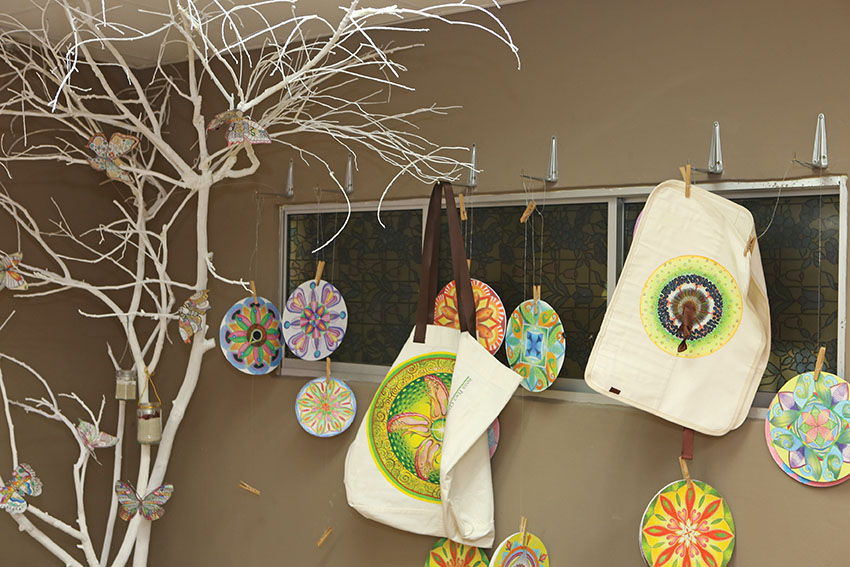 中心展示的都是春源及其学生的曼陀罗作品。有许多来上曼陀罗工作坊的学员,一开始看到这些画时都会惊叹连连,并担忧自己无法做到。可是当他们亲自动手下笔一步一步去完成他们人生中第一幅曼陀罗之后,他们都会发出同样的惊叹:原来我也可以做到!