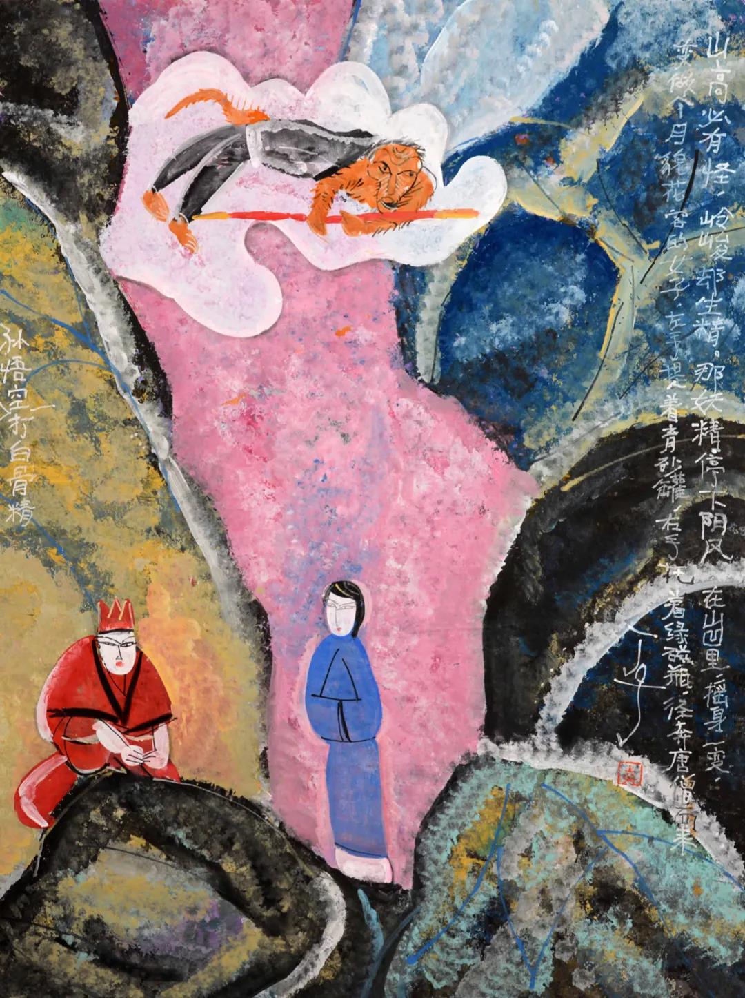 他最欣赏的孙悟空,工作责任也最大,腾在空中,冲在最前面,“他也不叫苦,乐观,常常把可怕的遭遇当成调笑来对待,是一只有趣至极的神猴,已经人化了的神。”
