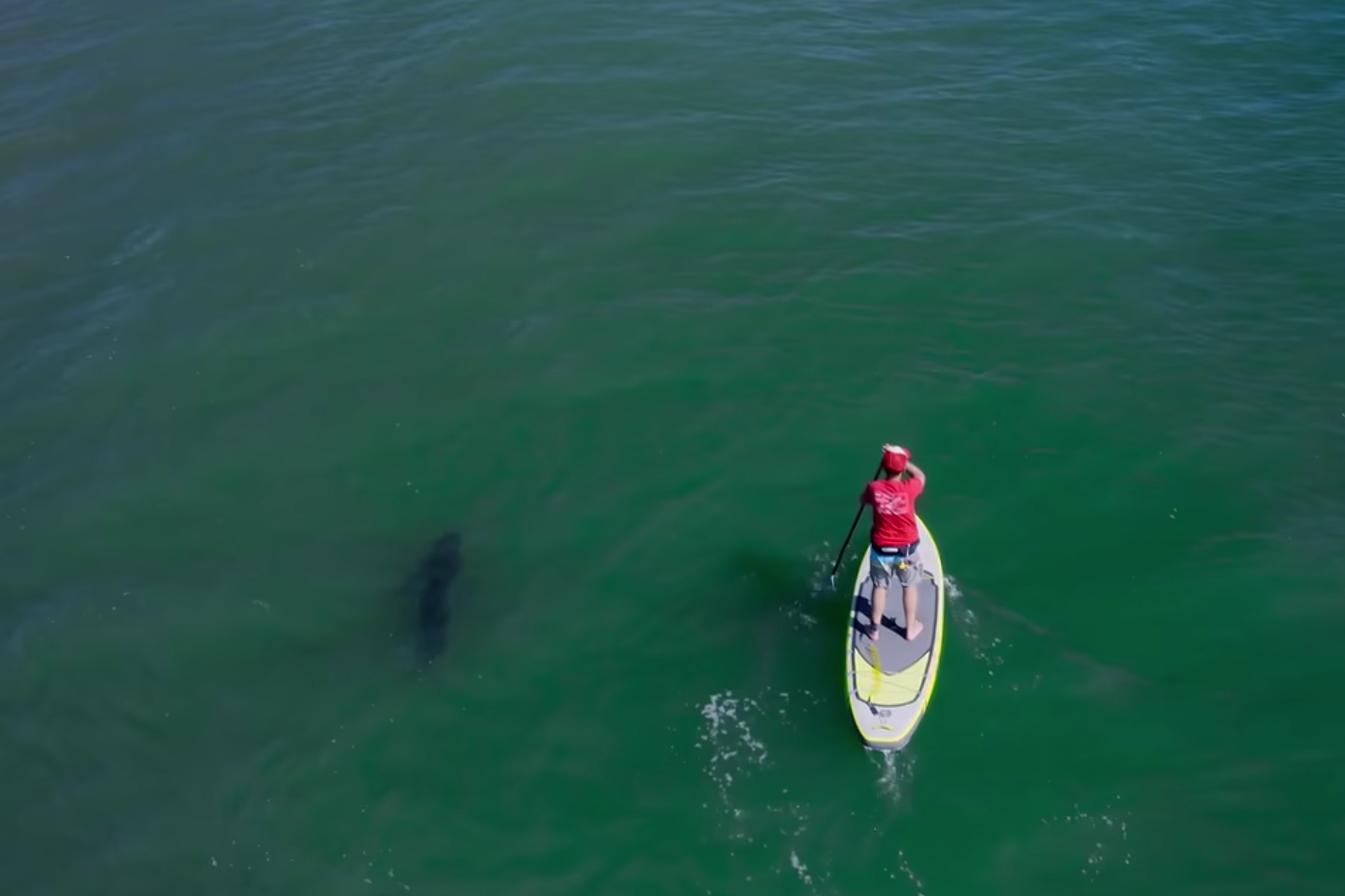● 夏季,身宽三米的翻车鱼在海面晒日光浴