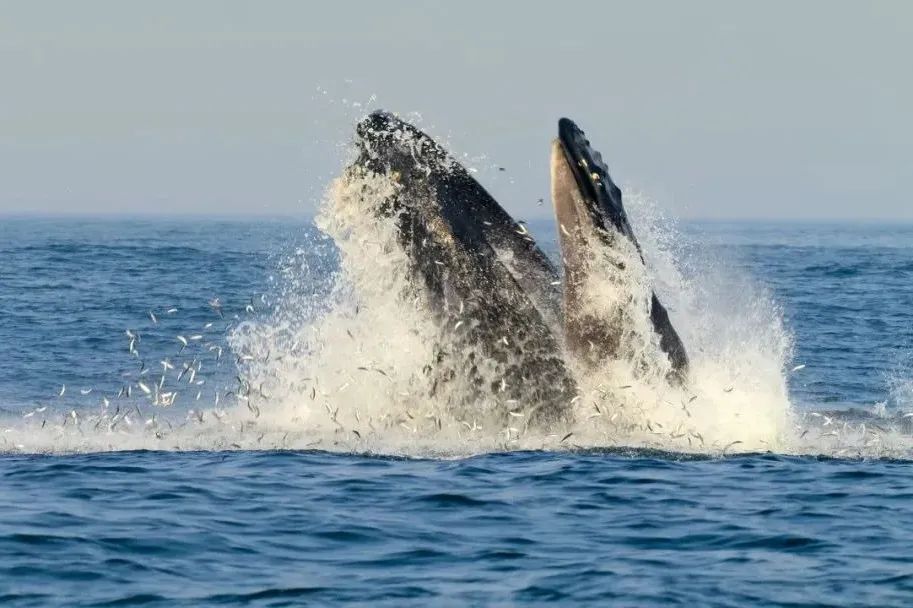 也正是这团团绿光,点亮了蒙特雷湾流动的盛宴——荨麻水母先来品尝开胃菜藻华,上百万的凤尾鱼呼哧一顿浮游生物,稍后座头鲸只需张大嘴巴就能享用凤尾鱼大餐,尾随而来的海狮和海豚还有凤尾鱼甜品吃到饱。