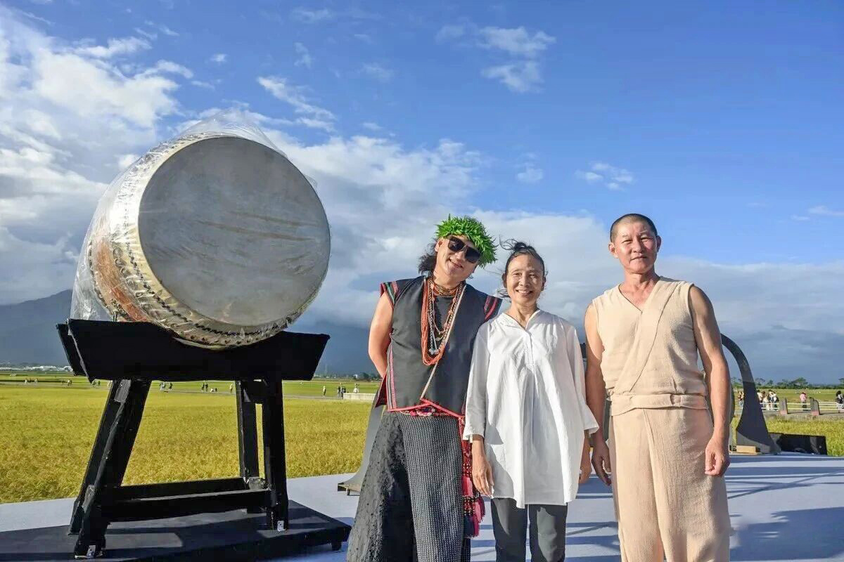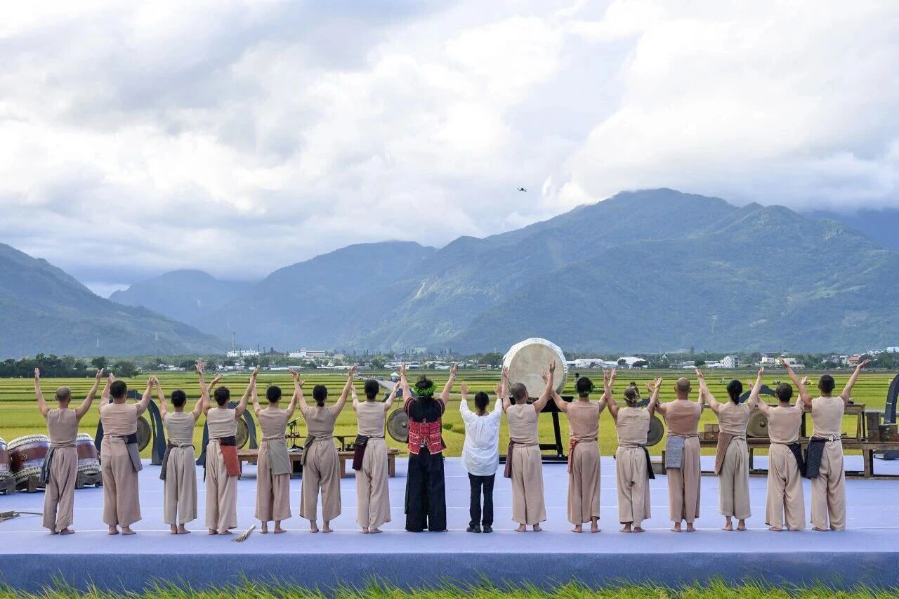 2025 池上秋收稻穗艺术节在天地清朗、山风轻拂的光景中开演,主持人曾宝仪一开场就温暖的述说:「 17 年来,池上这片土地教会我很多事情,而帮我上第一课的是优人神鼓,那一年在排练时,我原先还在为其他工作忧虑,突然听到鼓声『咚』的一下。它提醒我,『你在这里,你活在当下。』一直到今天,我都还谨记着那一刻。」