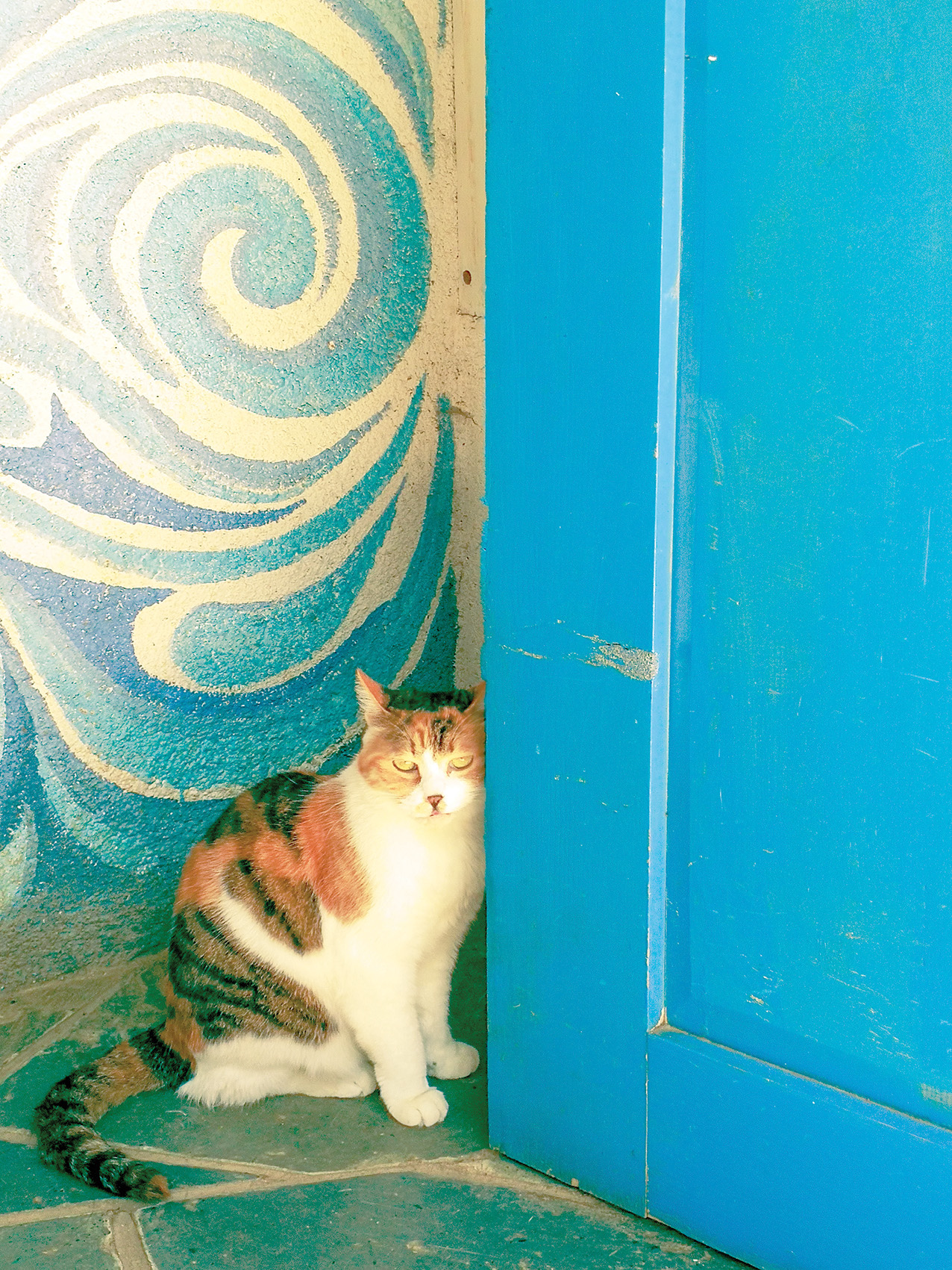 走在丽江古城转角处的一家书店,发现门口或坐;或趴着一只猫,使我好奇的是,这只猫的脸上流露出非常满足的神情,尾巴总是翘得高高的,于是我站在那里研究猫儿为什么这么满足?