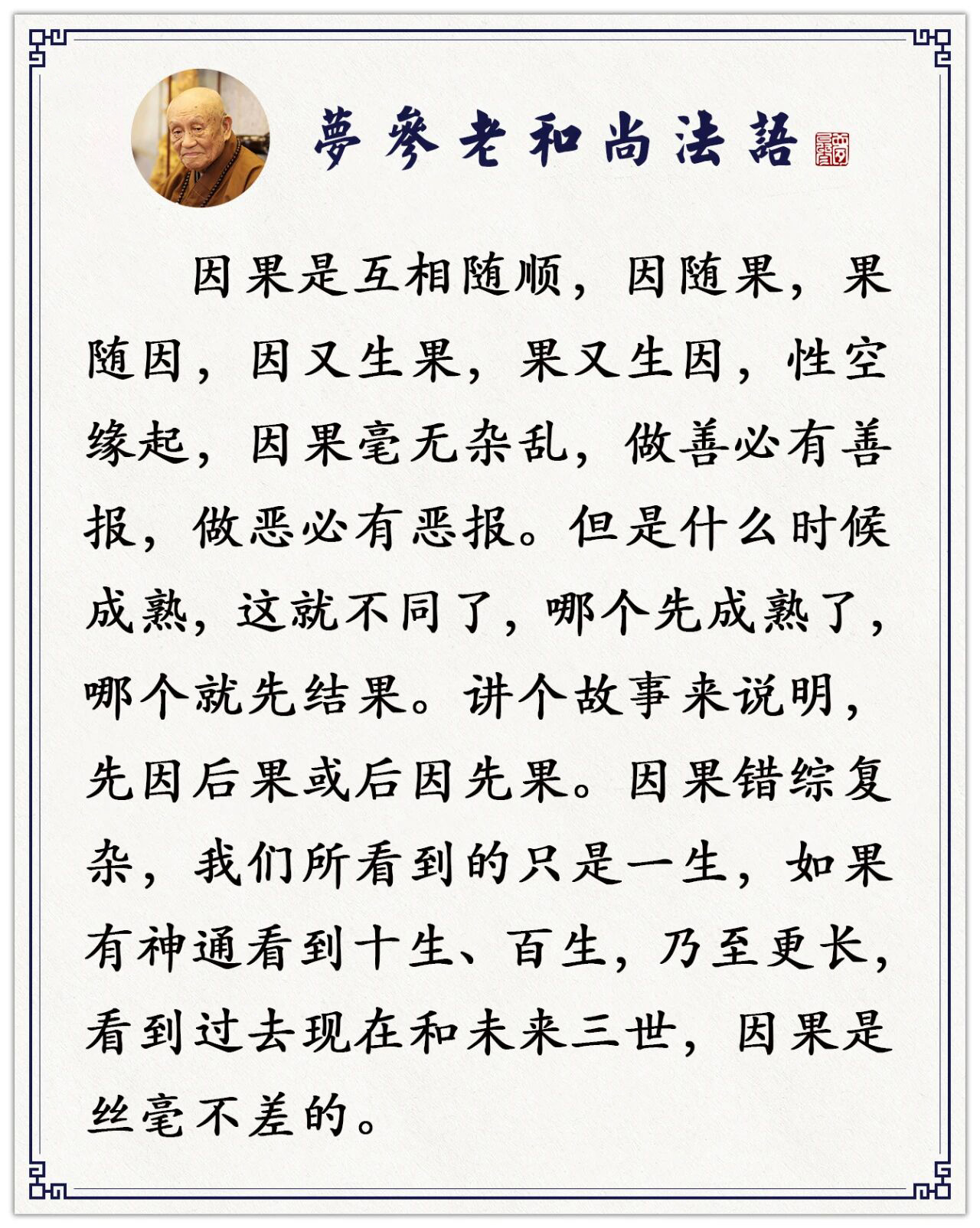 这件事作为一个我们佛教宣传材料,这两边的事我都知道。这是他先做的恶果,恶因恶果成就了;做的善事在后边,那报还没来,他把恶还完了再受报。