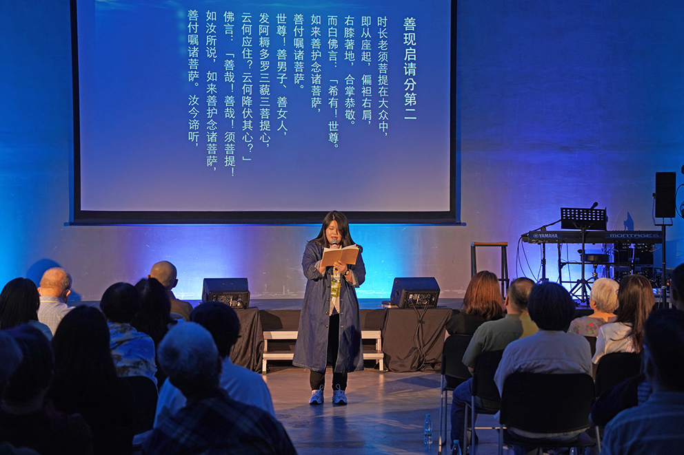 《金刚经》共读会邀请2位嘉宾:骆荣富与傅承得分享他们的心得,再加上林卿柔声线柔美地朗诵段落,带动了现场观众跃跃欲试,轮流选读自己最有感的字句参与朗诵,一时间整个空间回响着法的流动。