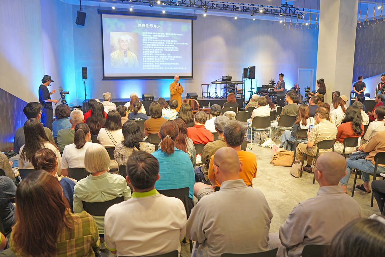继程法师说《金刚经》告诉我们缘起性空,我们心如虚空,原本无染,我们只需把空间清理,先从门口开始,逐渐往里挖,淘空之后,心净化到了“毕竟空”的状态,就比如我们现在身处的这个场地,在活动之前也许有尘埃,有杂物,把空间空掉之后,空旷使人感觉舒畅。