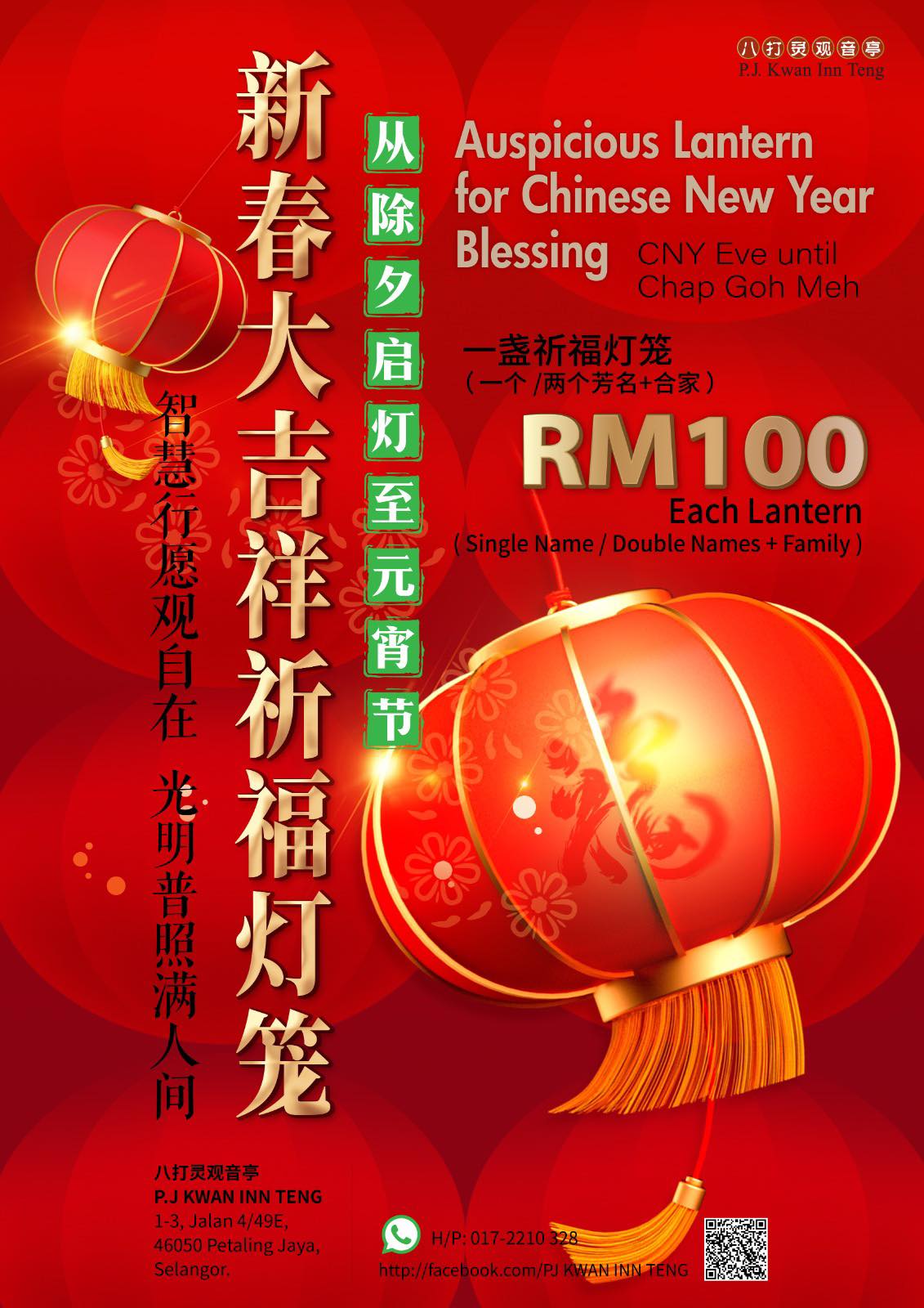 PJ Kwan Inn Teng is inviting all devotees to participate in the “Grand Auspicious Lantern” offering from CNY Eve until Chap Goh Meh and each lantern is RM100.00.