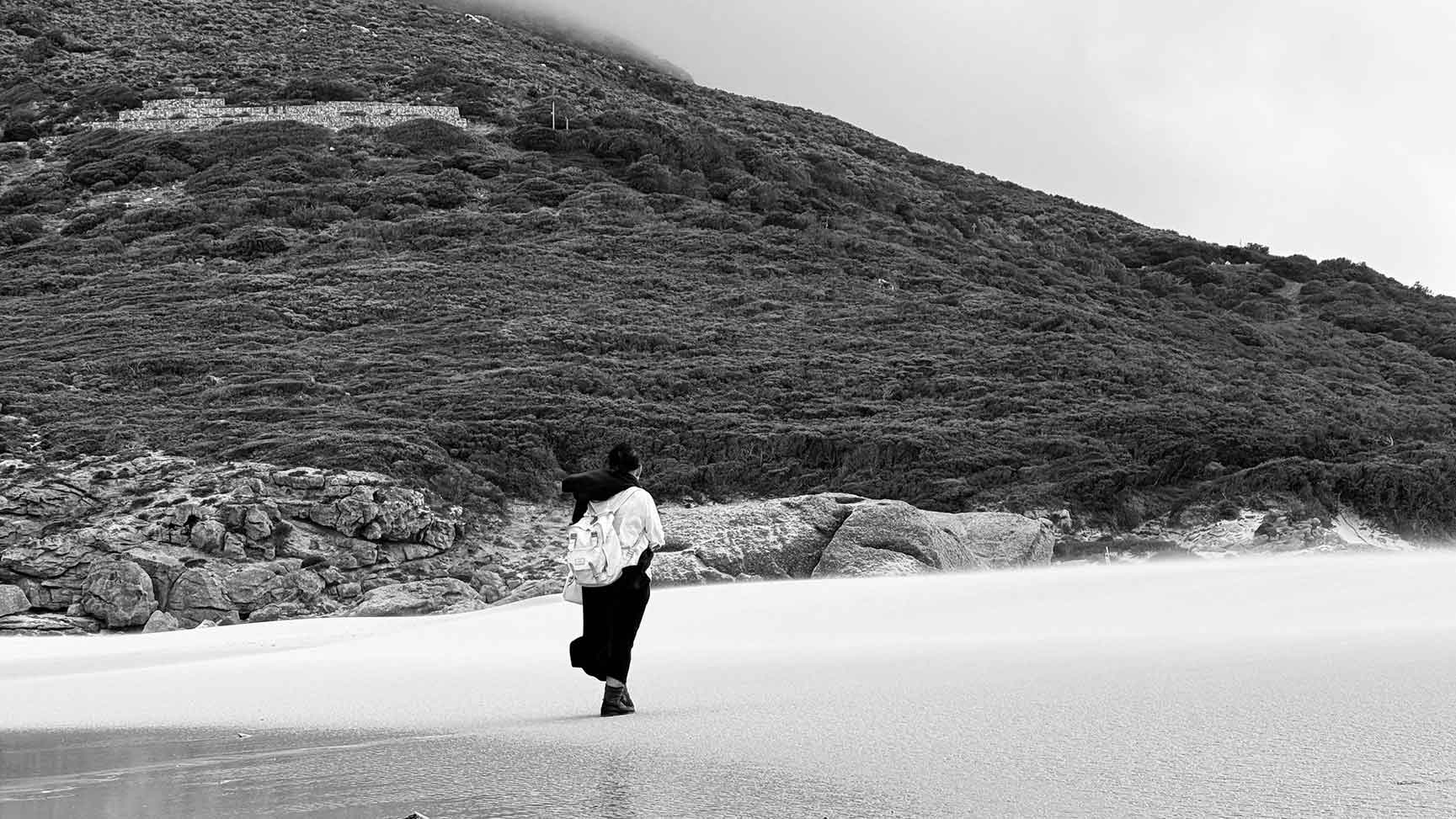 偌大的海灘,渺无人迹。只有風大得把人吹得往前走。