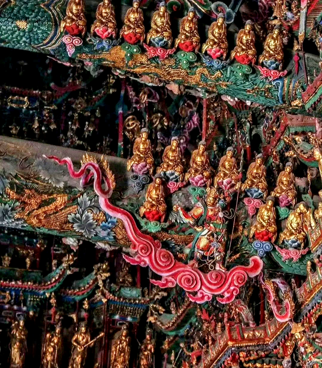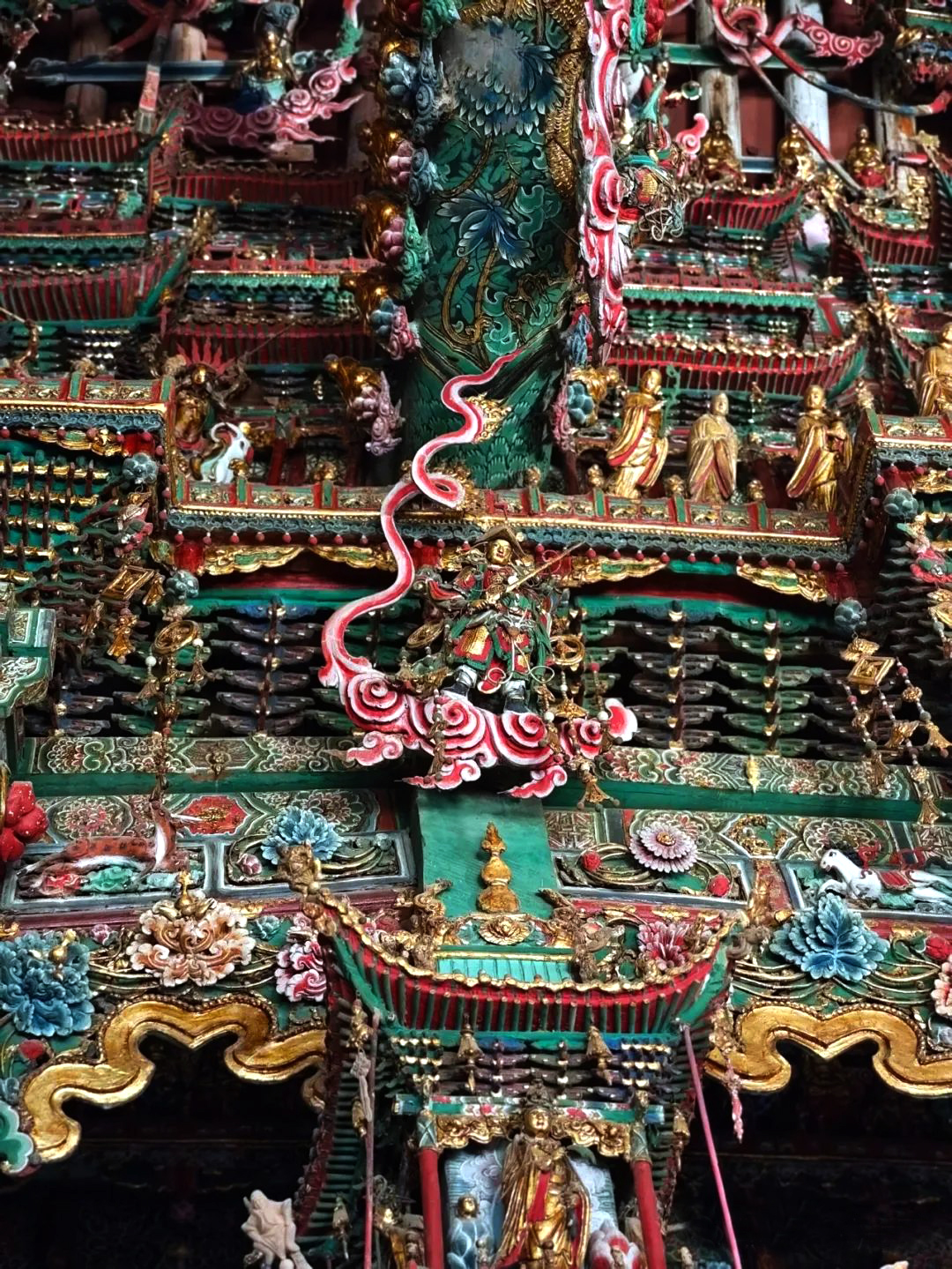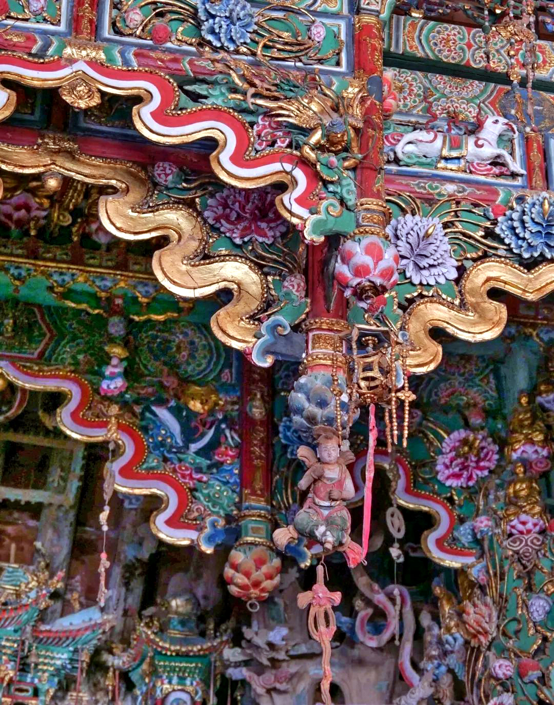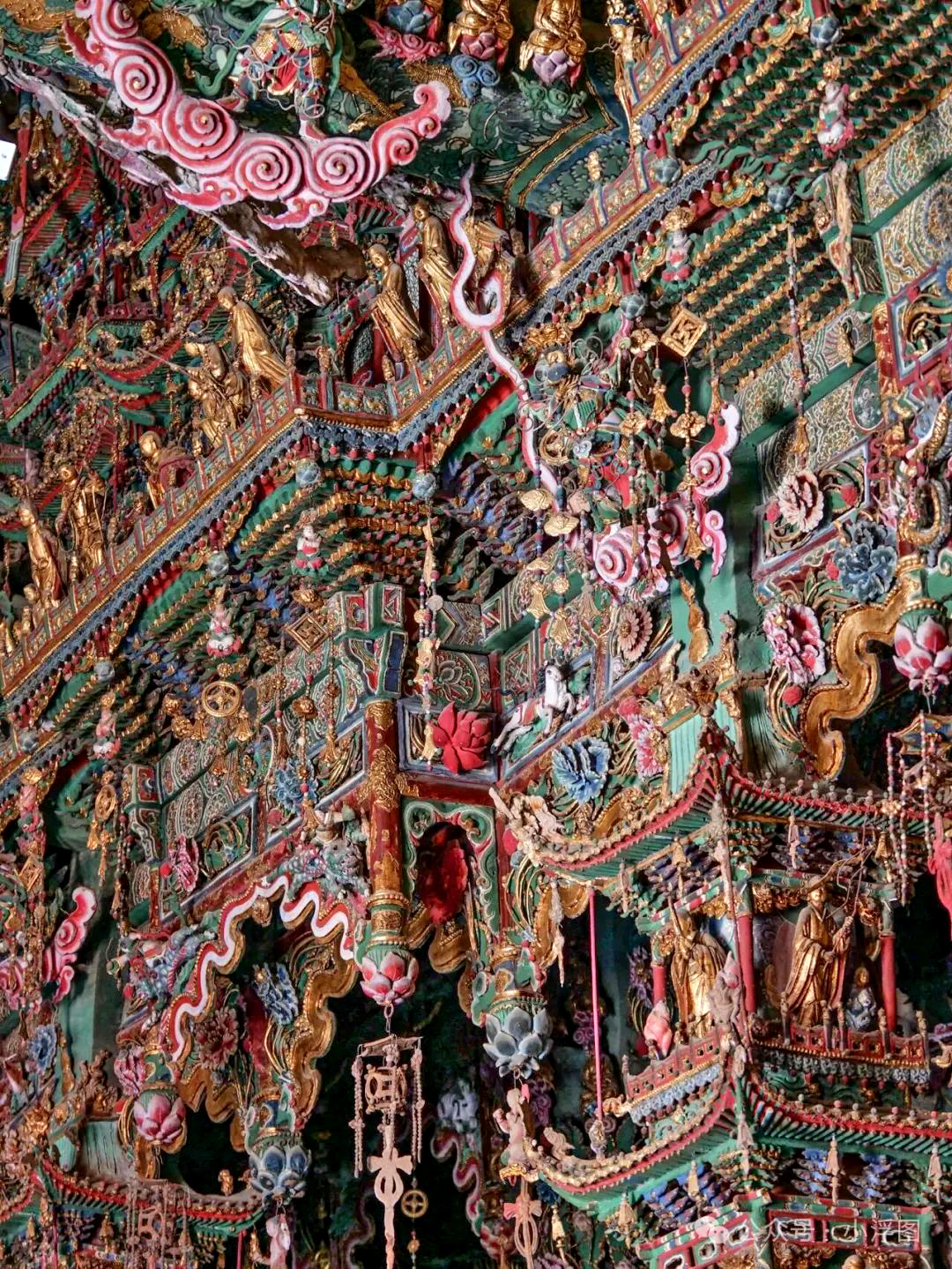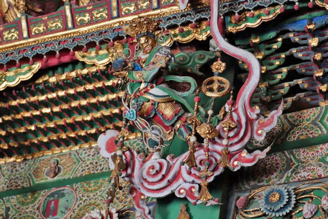 这里的悬塑遍布整个寺庙,云海山川、神话人物、奇草仙葩、金刚罗汉等栩栩如生,宛如一幅幅生动的“连环画”。