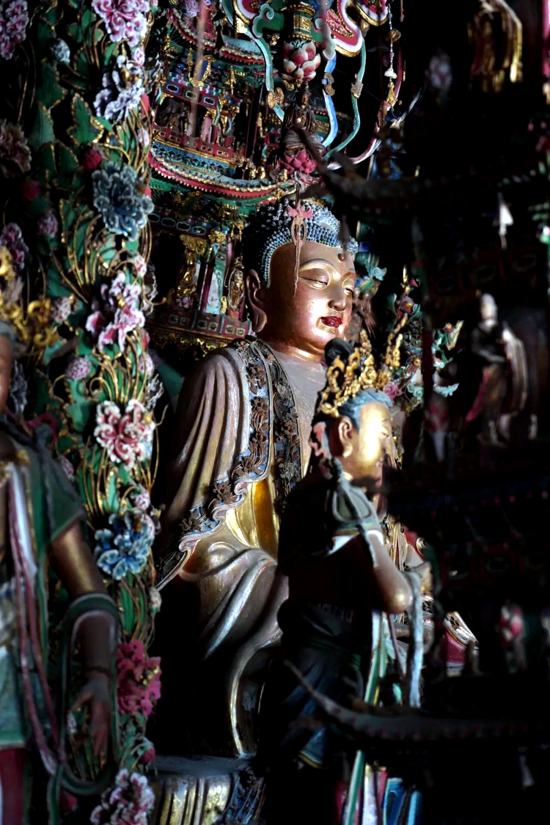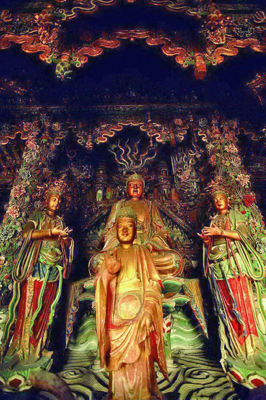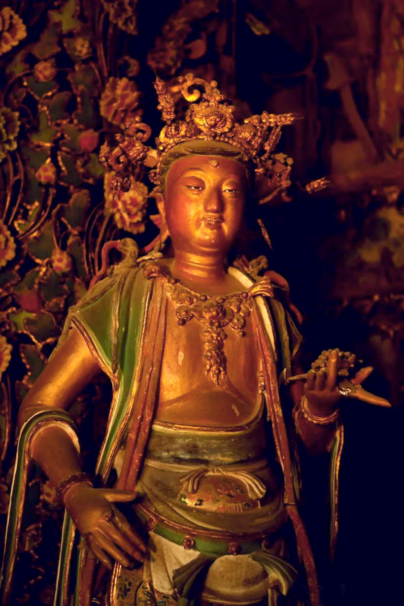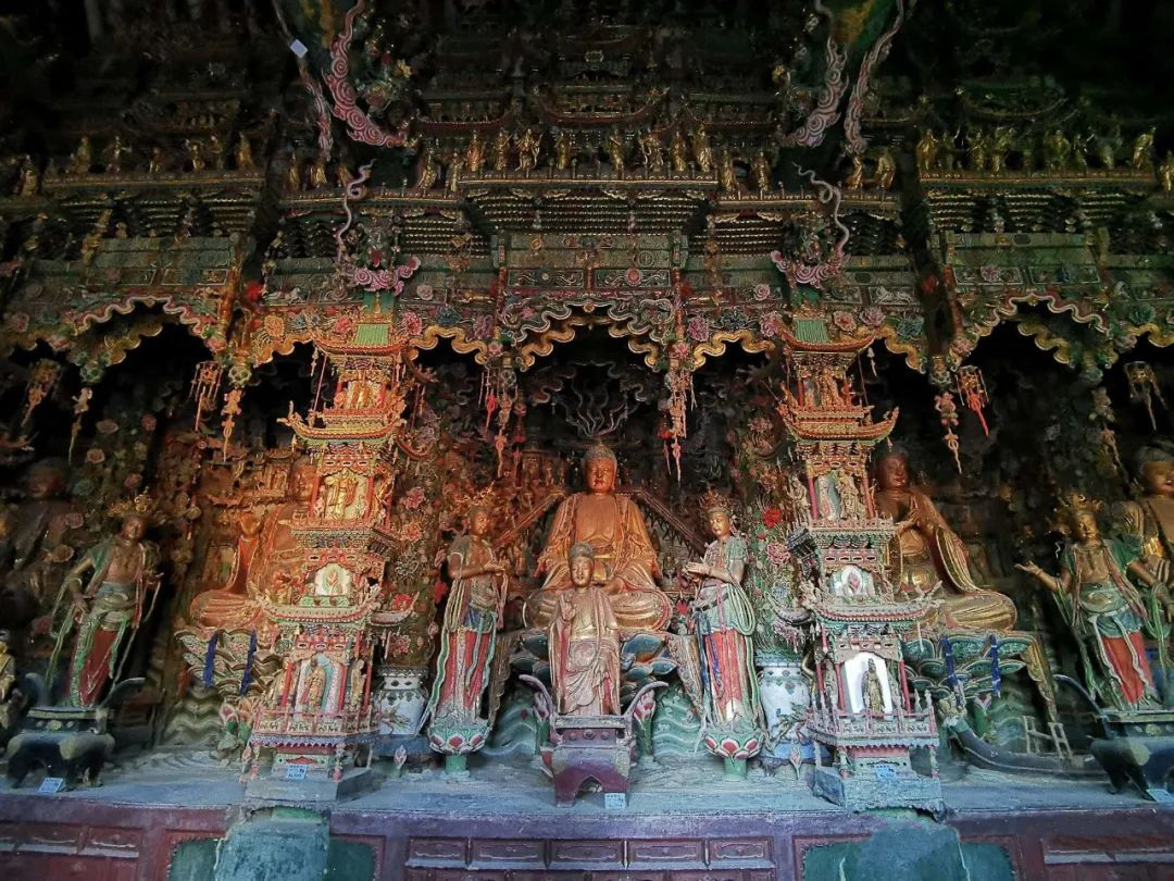 上院则是小西天的精华所在,大雄宝殿内的明代泥塑举世闻名,满殿泥塑的殿堂楼阁、神楼佛龛、奇花异木、珍禽走兽、菩萨神灵、飞天乐伎,令人目不暇接,置身其中,仿佛进入了一个神奇的仙宫佛国极乐世界,让人流连忘返。