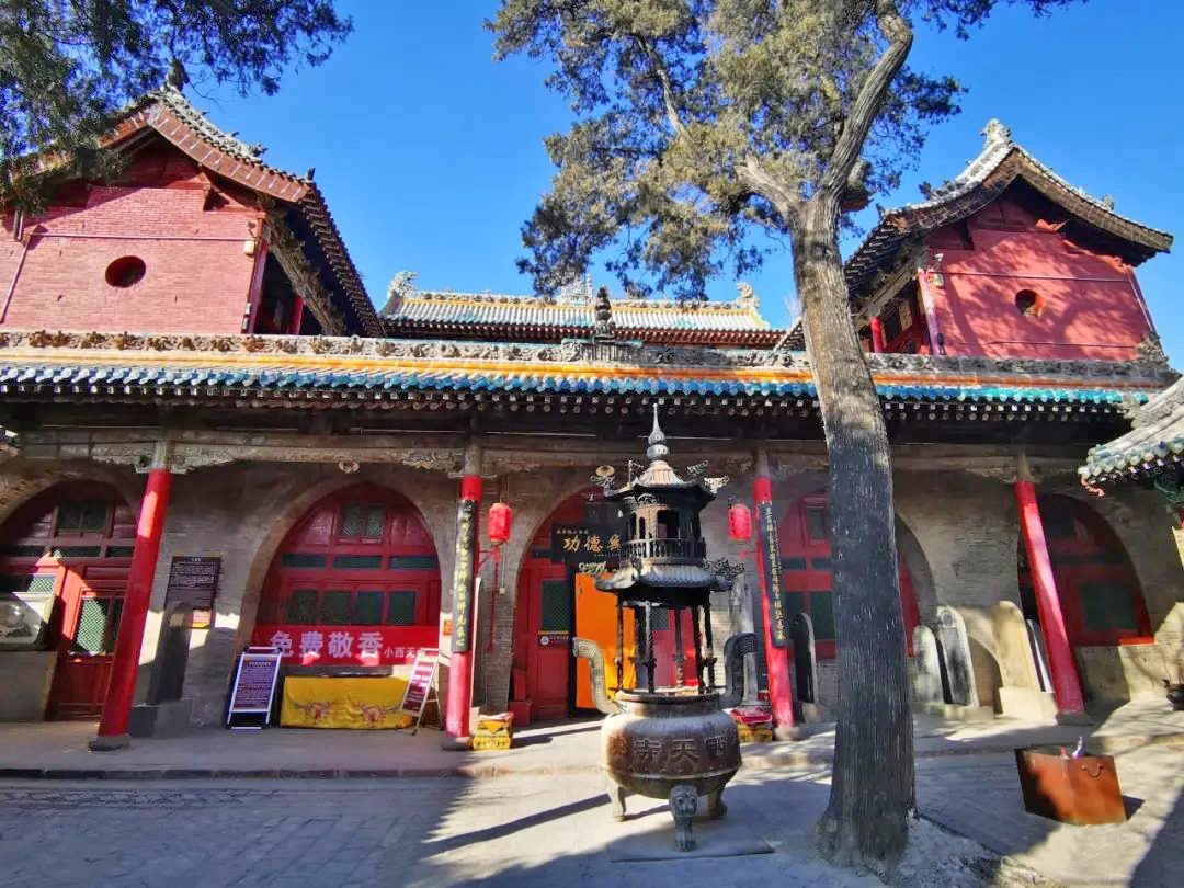 有别于其他宏伟高大的名山大寺,由明代东明禅师创建于明崇祯二年的小西天虽然依山叠造,三面环山,但整体十分小巧,占地面积也不过1100多平方米。初因大雄宝殿内有佛像千尊而得名“千佛庵”,后因重门额题“道人西天”,又为区别城南另一座明代寺院“大西天”而更名“小西天”。