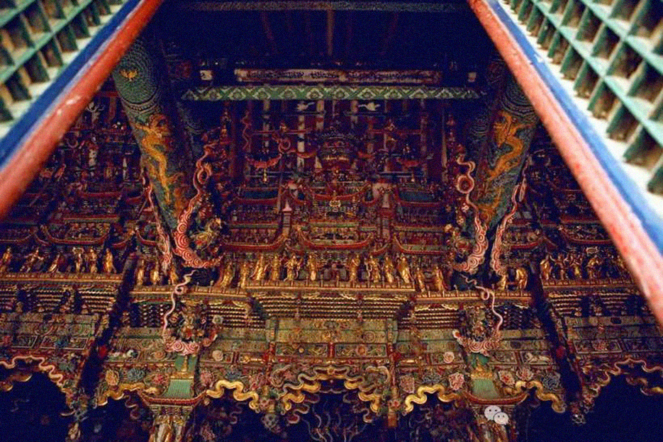 小西天的美不仅源于其建筑之独特,最奇妙在于那些悬于空中的精美泥塑,创造了一个富丽堂皇的西天“极乐世界”。