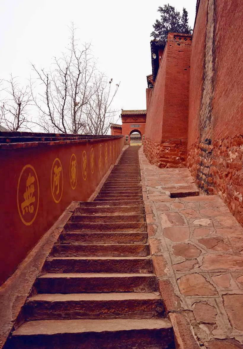 另一独特处在于,寺院以洞为门,把上院、下院分隔开来。下院有坐西面东的无量殿,也是僧众诵经的禅堂,殿中是木雕楼阁和数十樽铜铸佛像。