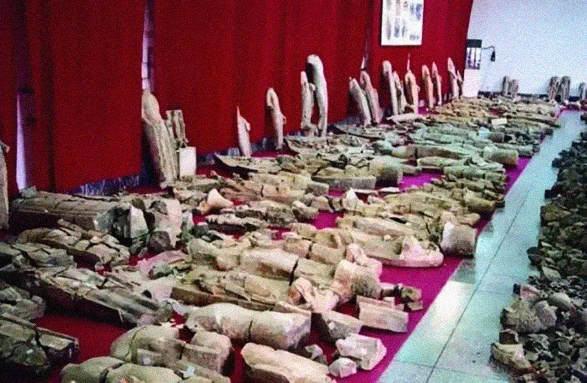 从发掘现场看,窖藏的造像排列有序,整齐地分上下三层,坐像都立式摆放,较完整的身躯摆在中间,头像则沿壁边缘排放,最上层的造像上还有席纹,并有祭烧过的痕迹。在窖坑的东侧,还有运送佛像到掩埋现场的坡道。这些迹象表明,龙兴寺窖藏是有计划、有步骤、有组织的行动。虔诚的佛教信徒担心已被破坏的佛像再遭厄运,在夜深人静之时,悄悄掩埋了这些残碎的佛像。