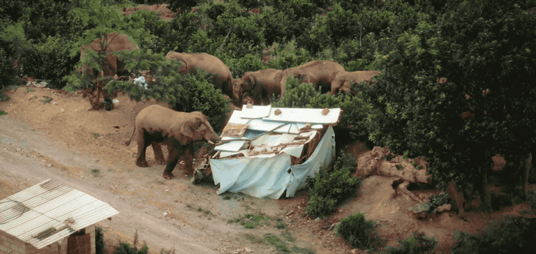 后续还有一头亚成年公象,也是中途离队,它四处溜达,冲撞树木,最后被麻醉后人工送回了西双版纳。