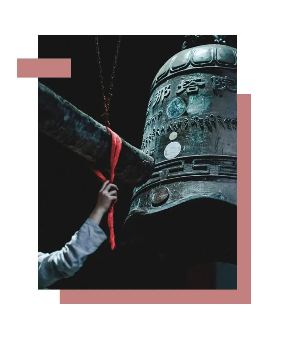 由于钟的声音浑厚深远,很早就成为佛教里的一个重要的法器。佛教寺院敲钟其实和寺院的清规戒律有关,《百丈清规》中说:“晓击则破长夜、警睡眠,暮击则觉昏衢、疏冥昧。”早晨是为了警醒世人从睡眠中觉醒,夜晚则是唤醒世人的昏昧混沌。