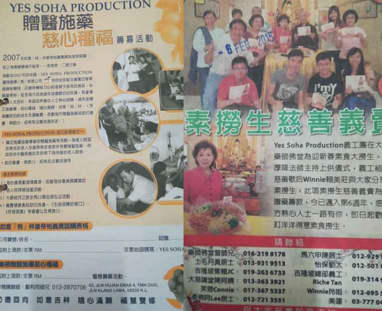 每年农历年都会在佛堂、老人院、孤儿院看到熟悉的《赠医施药素捞生》字样,就知道是新的一年送暖。Yes Soha 义工团发起人郑利同每一年都会放下工作几个星期做素捞生义卖。很少人知道他源于一次的发愿。