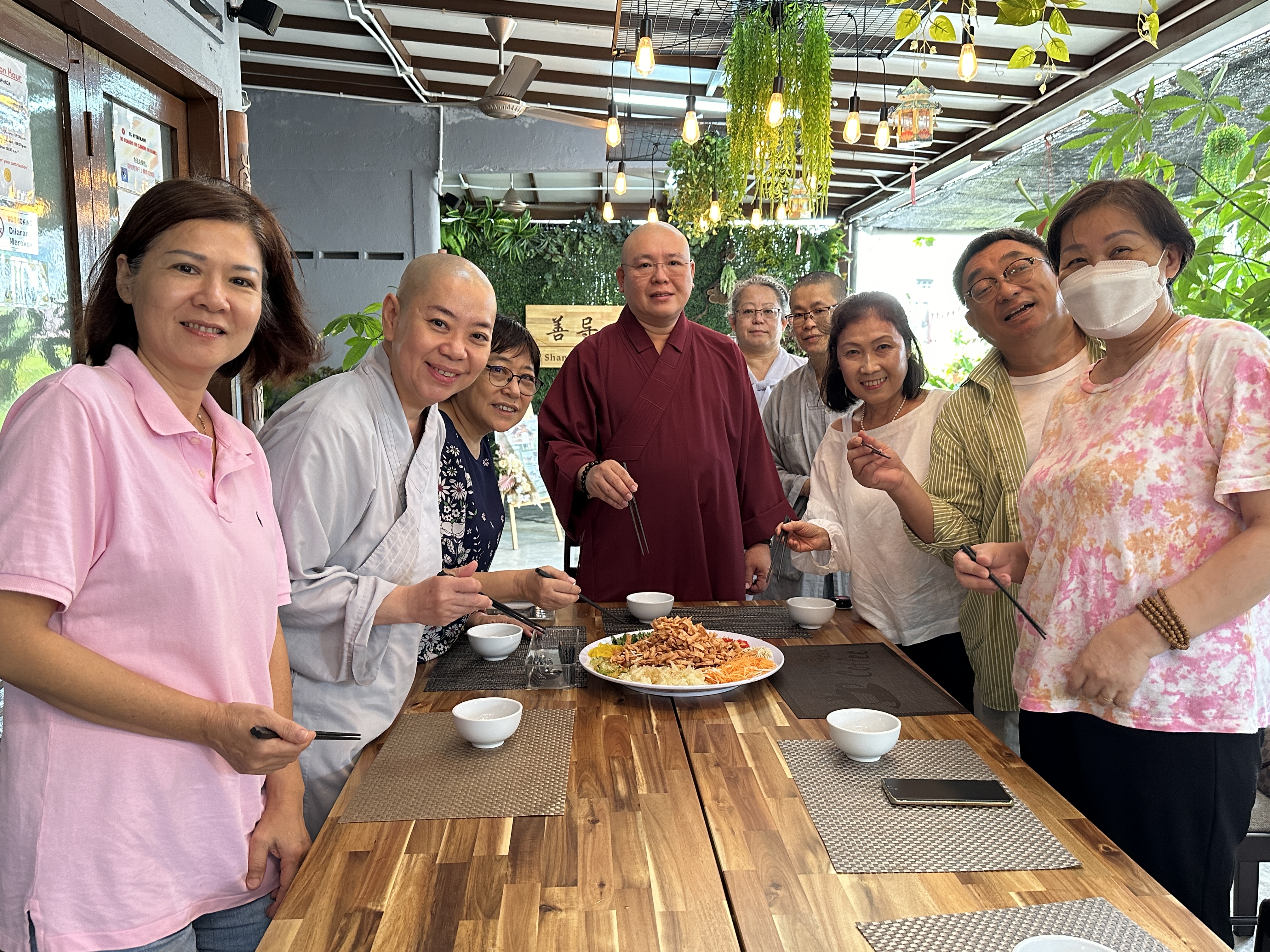 利同说,素捞生带来的不仅仅是推广素食,还有和佛堂、老人院结了很多善缘。每一年必和善导精舍的住持开善法师素捞生拜年。“已经十五年了。“吃过素捞生,再和师父请法。他觉得这是非常有意义的事情。仿佛给年加分了。