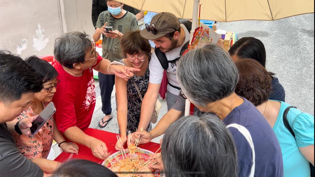 ”去年农历二月,我们在茨厂街义卖。吸引了一些外国人游客围观,并邀請他們一起街头捞生。那是很特别的体验。“