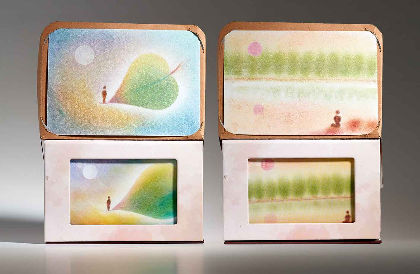 置身在愿姗于八打灵佛光山大学园滴水坊的粉彩画展,仿如置身在如梦如幻的色彩世界。愿姗配合星云法师圆寂周年纪念,展出108幅她原创的粉彩画。