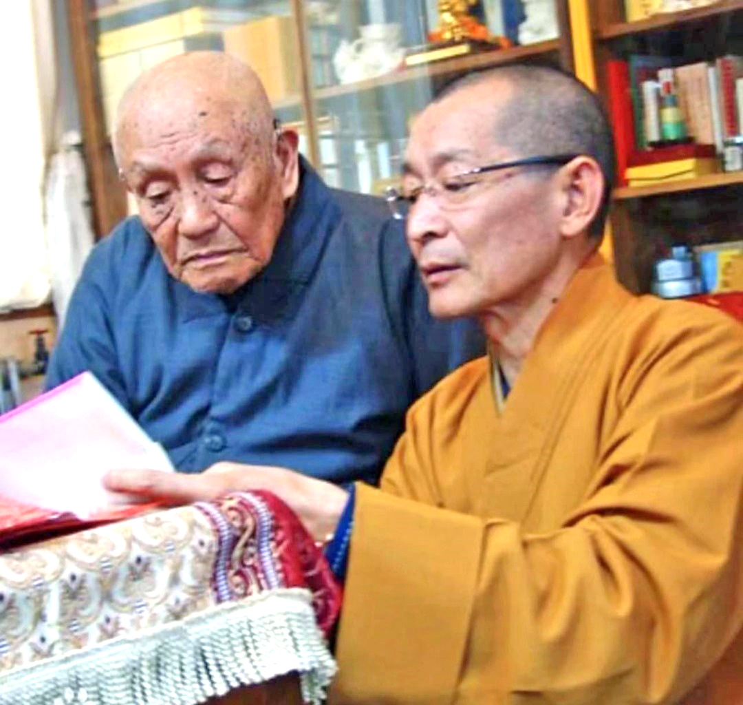 梦参老和尚(左)与海云继梦法师结下难得的师徒因缘。(图片截自甘露亭脸书)