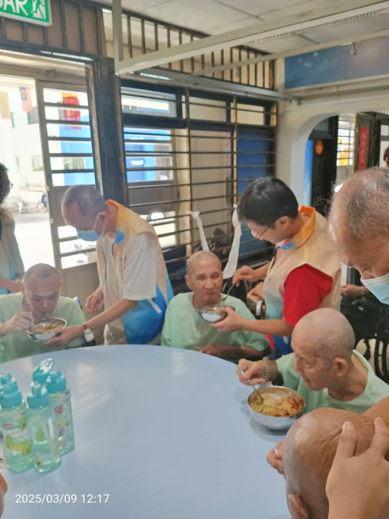 “慈心厨房”定期准备便当与饭菜,送往老人院与疗养院。有些长者行动不便,志工不仅送餐,还会坐在一旁耐心喂食,陪他们好好吃一顿饭。在这些饱受病痛的长者当中,有些无亲无故,有些久久无人探望;一顿饭的陪伴与关怀,或许正是他们内心渴望却难以言说的期盼。