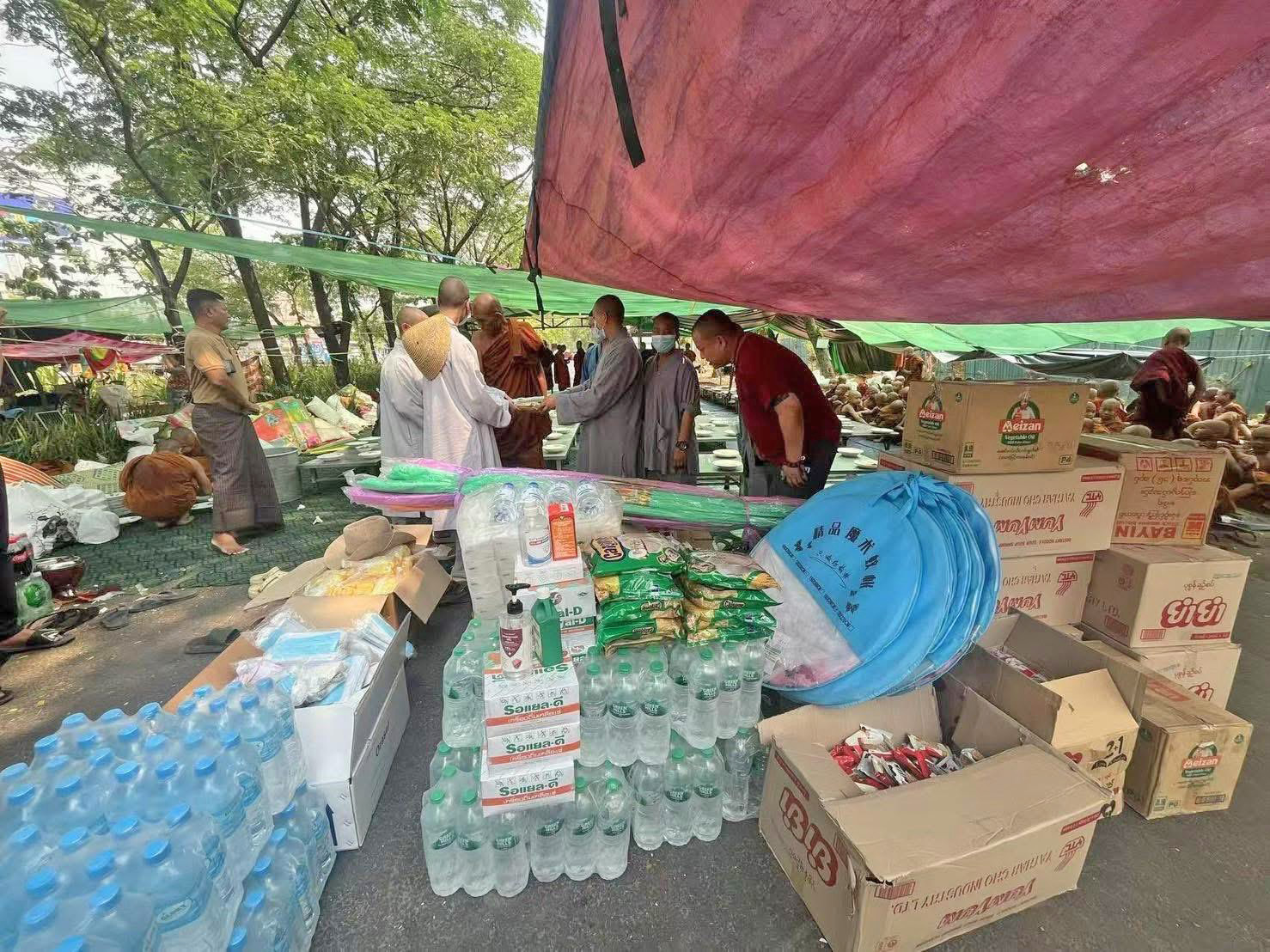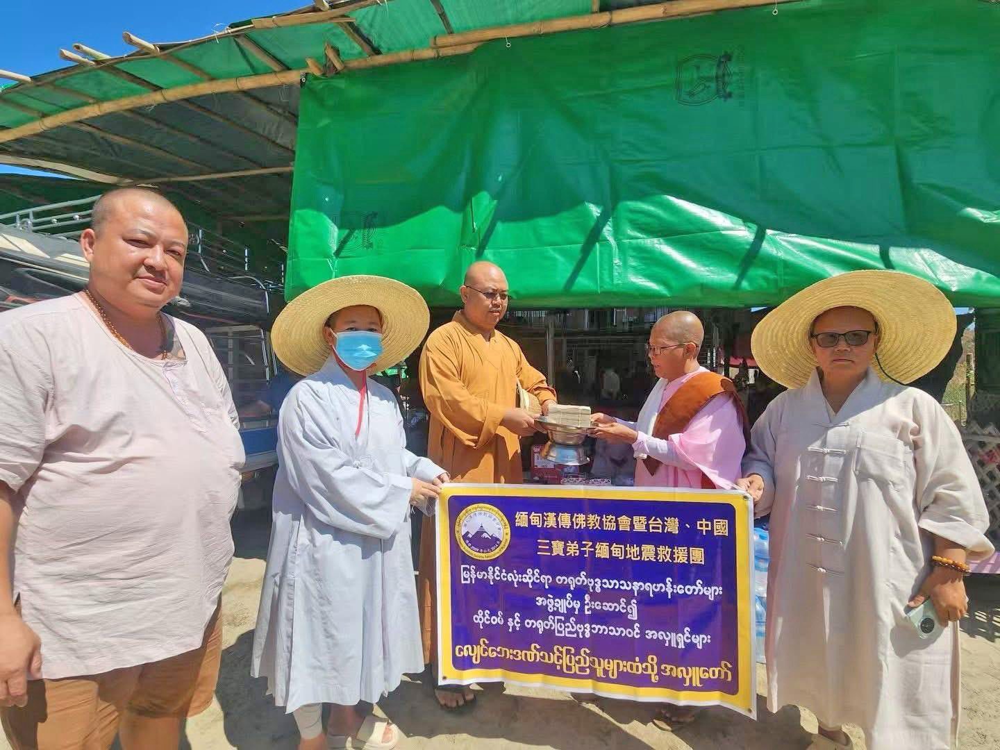 师父:“灾难突如其来。师父非常赞叹世界各地许多国家与团体的即时援助。师父在美国念书时,认识一位从如法师,透过他在缅甸的师兄从法法师,迅速展开支援。从法法师是缅甸仰光达本禅寺的住持,该寺法师们非常慈悲,第一时间便将物资送至灾区。”