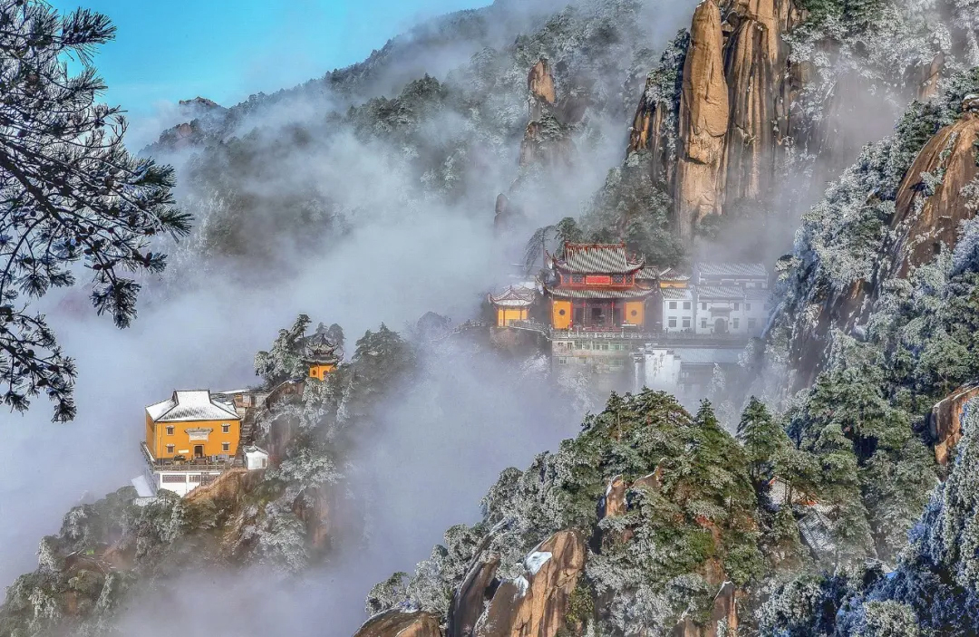 就算非佛教徒,也会神往九华山。黄杨、丹桂、竹、菊等四时花卉遍地植栽,每个季节都很养眼。春天,古朴的村落掩映在五彩春色中,茶芽的清香滋养着春天;夏天,万山绿遍成荫,清泉夏荷给炎炎夏日带了一缕清凉;秋天,枫树转红,和寺院黄相映,塑造了一个金灿灿的九华山;冬天,也有雪大封山的时候,整个山头银装素裹。