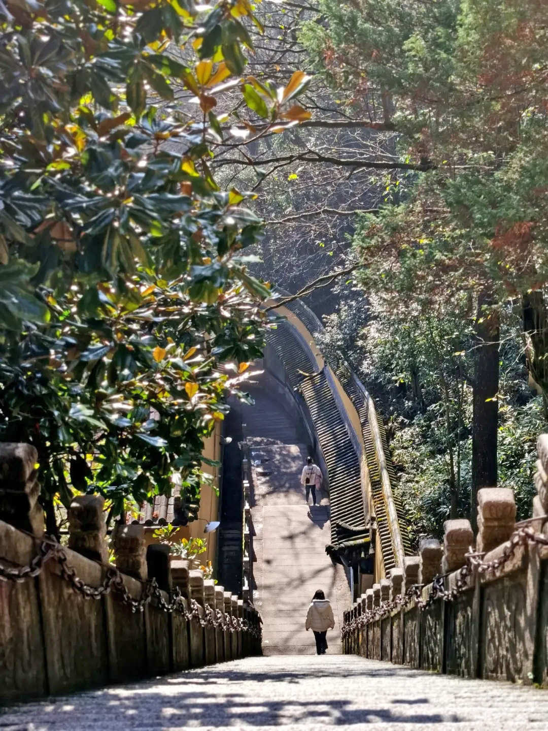 天台的灵魂天台禅寺还在山峰之上,下了索道后要再往上爬。腿脚好的,一个来回也需要半个多小时。虽说不到天台禅寺等于没去过天台,但在山腰看看轿夫们招徕生意,人们犹豫不决到底要不要上去,也是一件有趣的事。