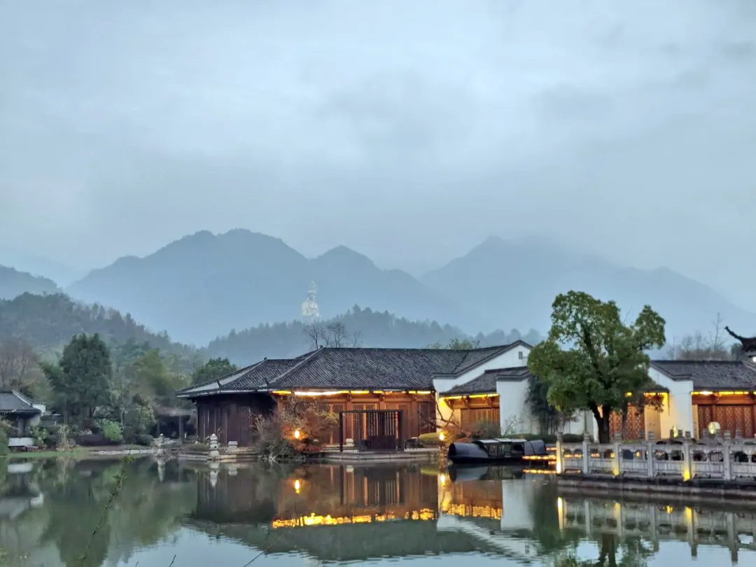 占地311亩的涵月楼算得上九华山园林景观上佳的下榻地了,徽派建筑、江南园林造景,呈现出一种悠闲的度假感。酒店本身就是一个目的地,景观极好,秋天一到,二十多种枫树争相变色,构成了色彩丰富的世外桃源。“九景五桥”的规划迎合九华山99座山峰,园中逛着逛着就看到了旁边大愿文化园里高99米的地藏王菩萨铜像。