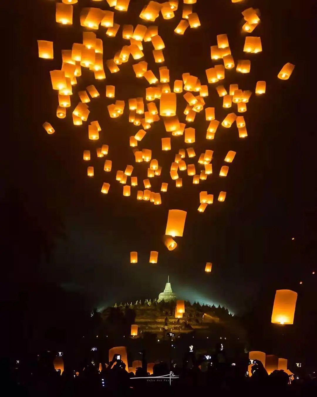 后来,人们将和灯笼很像的天灯引入佛教仪式中,婆罗浮屠在卫塞节放飞天灯的传统,有象征着整个宇宙启蒙的重大意义。