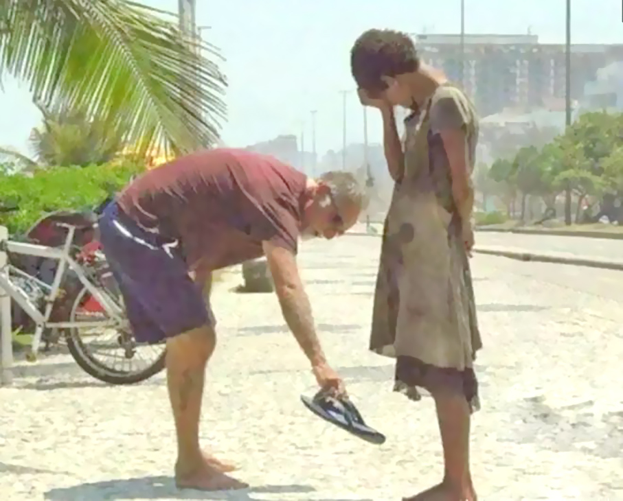 ◆ 一位老人将自己的拖鞋送给了流浪的孩子,即使老人的生活并不富裕,但是当他遇到比自己还困难的人时,也会坚定地帮助他,自己也会感到非常地开心。
