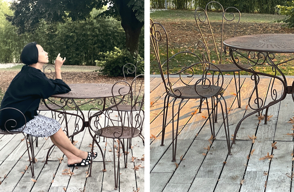 ▲ 磨掉铁锈,重新上漆,桌椅得以继续使用