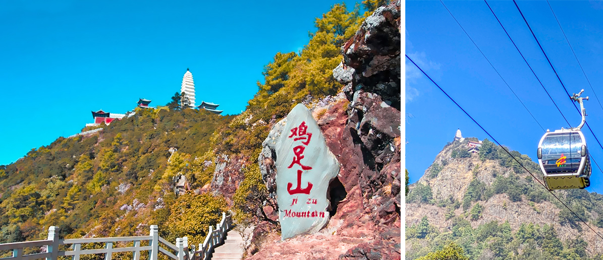 鸡足山,明朝前叫九曲山,或九重岩山,至明朝李元阳由九曲山,见一山耸出,平顶向南;余三方各有山一支,如顶上之三足,故称鸡足山。