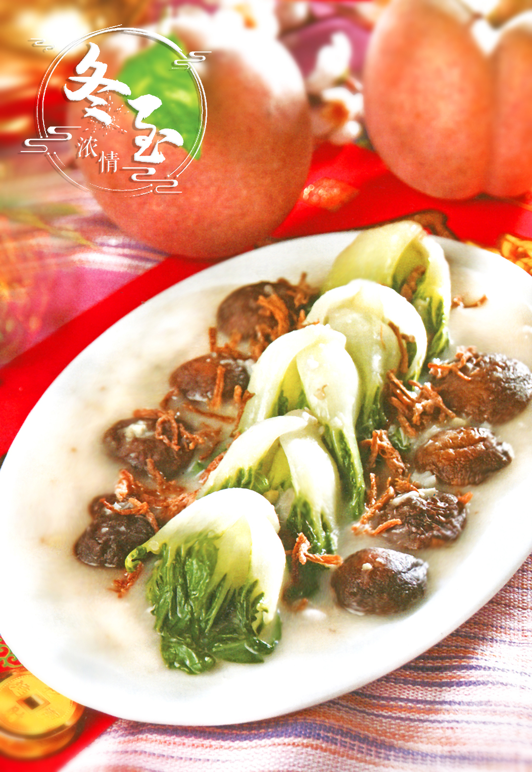4.烧热2大匙油,爆香姜茸。加入全部调味料和芋泥,煮至汁浓。再加入奶白与鲜菇,炒匀上碟。