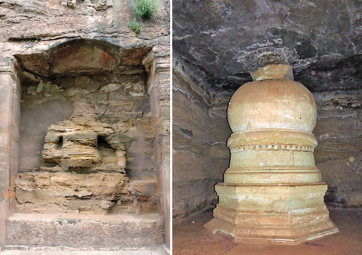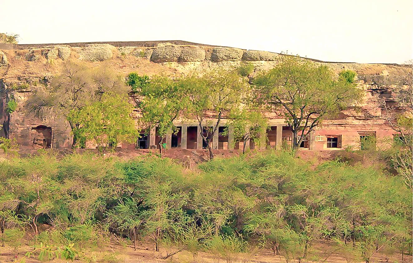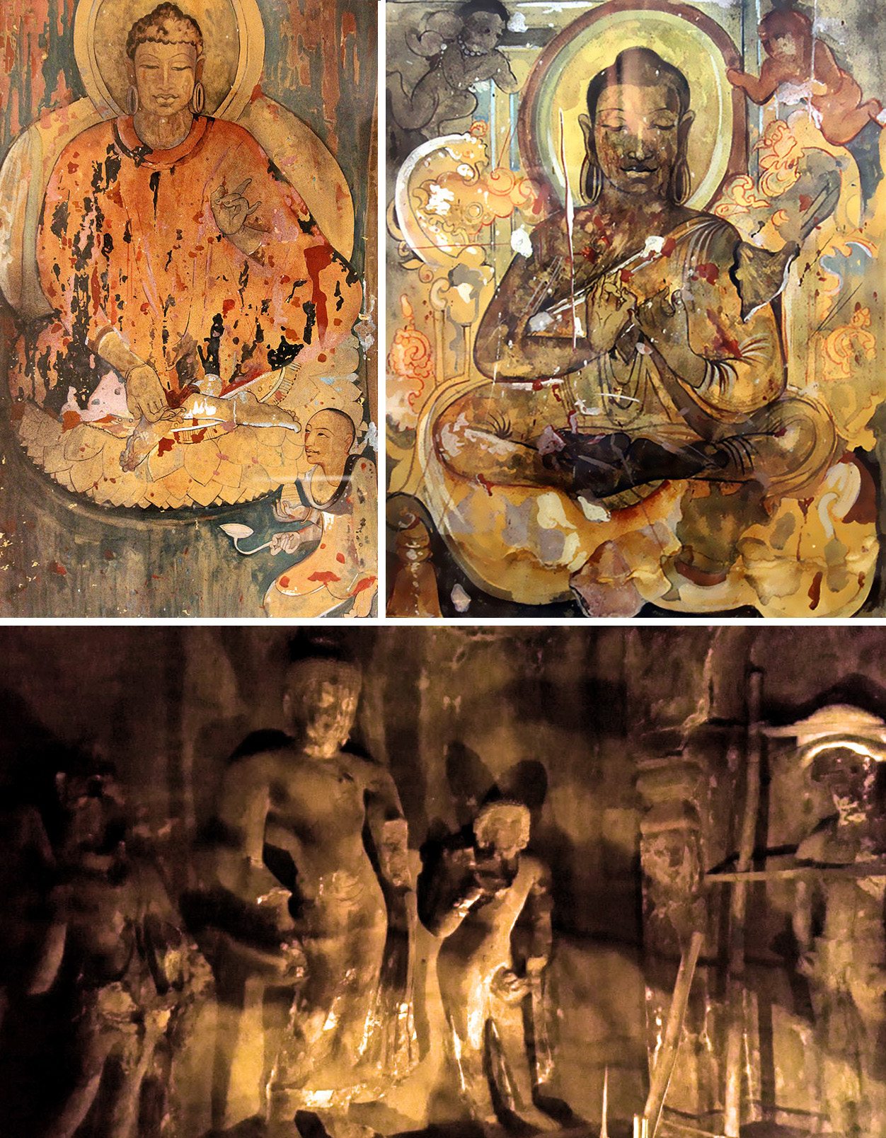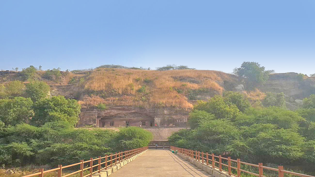 这些古迹位于德哈镇97公里处。这些以古代印度主要画家的壁画而闻名。窟内壁画取材于佛教《本生经》、《譬喻经》,但内容已趋于世俗化,如音乐歌舞、说法诵经、宫廷生活等均有表现。