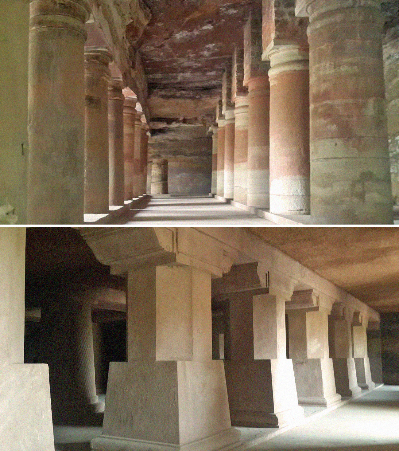 在千余年的发展过程中﹐大致可分为早期佛教石窟(前3~公元3世纪)和笈多王朝时期石窟(4~7世纪)两大时期。其建筑与雕刻风格后传至阿富汗和中国。
