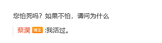 曾有网友问他:您怕死吗?如果不怕,请问为什么?