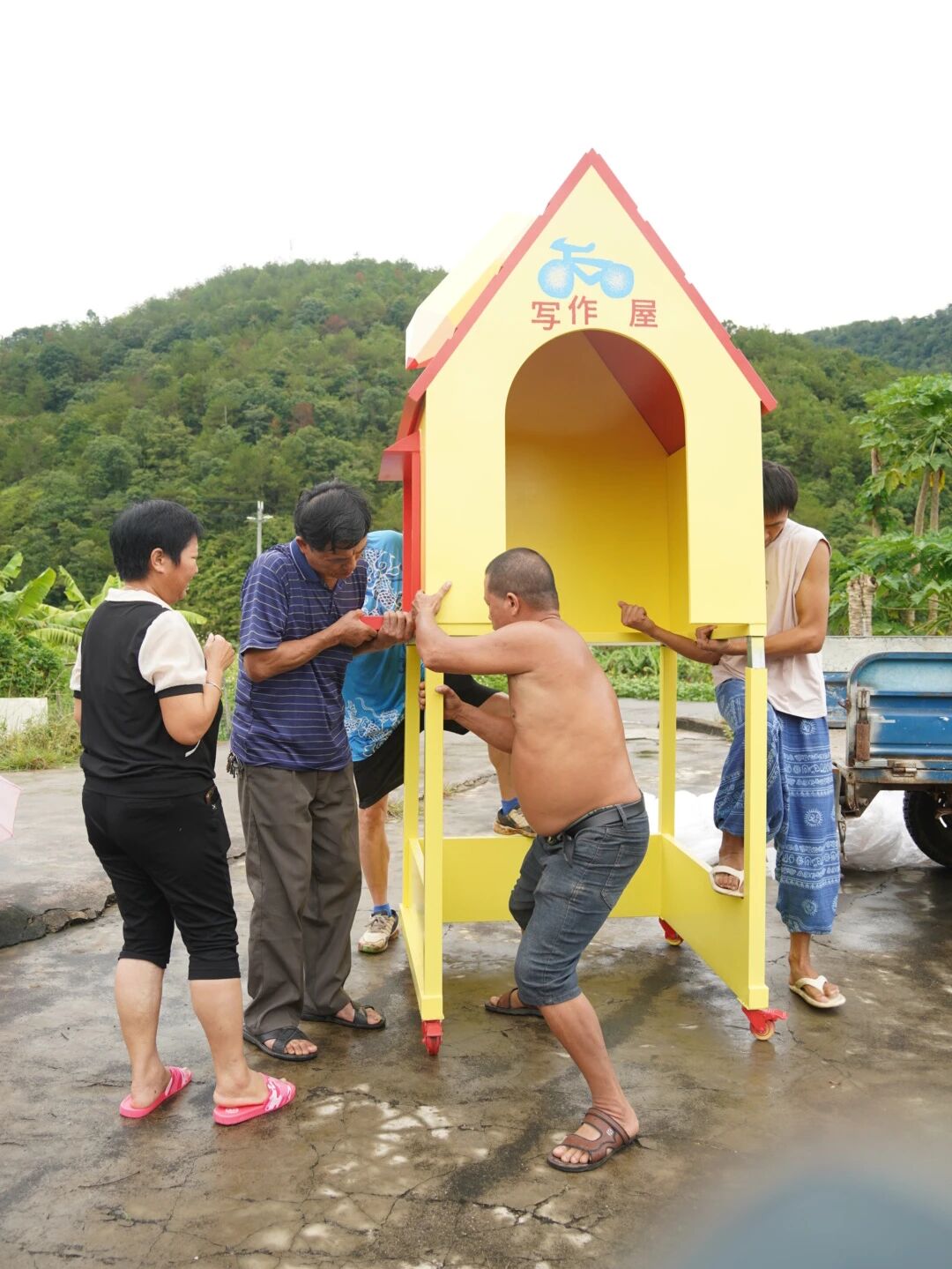 梅州的写作屋是在小雨中搭起来的。村里叔叔阿姨都来帮忙,大力士阿贤叔三两下就固定好了屋架——就像种一棵树那样自然。