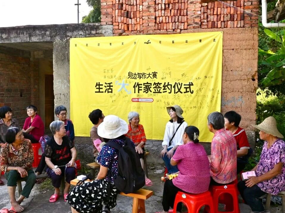最后,阿姨婆们在生活大作家签约仪式的幕布上,郑重地写下了自己的名字。她们是钟琼英、邓裕君、巫秀云、饶艳霞、吴雪春、美珍、筱媚……