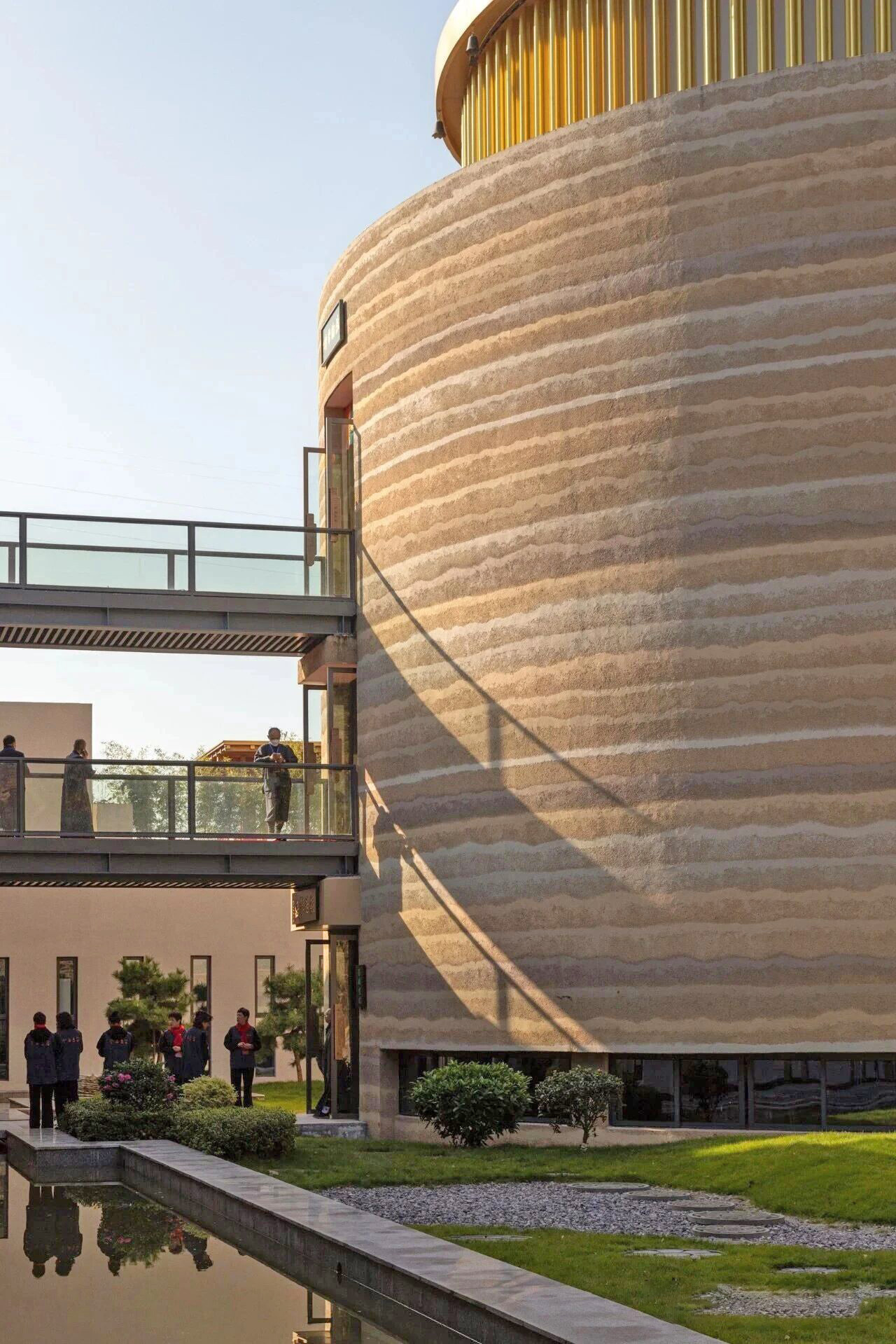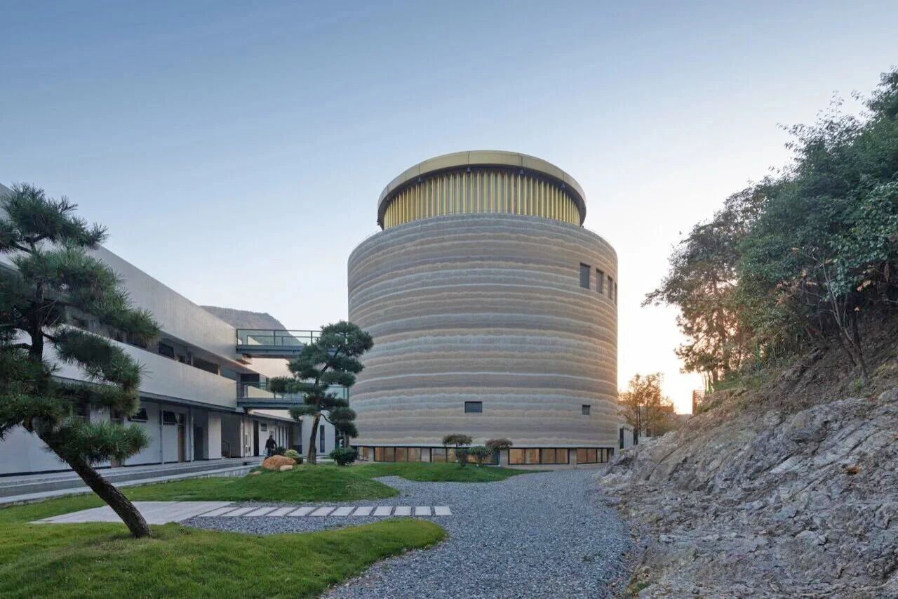 圆柱建筑成为整个寺庙的灵魂,设计团队巧妙地将传统上水平布局的大雄宝殿、藏经阁和讲经堂进行垂直整合,使佛教文化中的殿、塔、龛、堂等元素得以和谐统一。