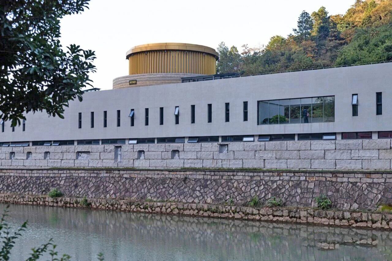 墙的外侧是溪流,在阳光与溪水的反光下,光影在石壁间流动,让建筑仿佛在“呼吸”,庄严而温柔,坚固却不冰冷。