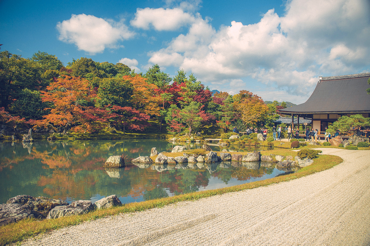 那天我们以天龙寺作为“红叶狩”路线的开始,天龙寺借岚山为远景,一年中可呈现樱花、红叶、雪景等四季绝景,可谓风光无限,美不胜收,它也是岚山五大寺院中的榜首。