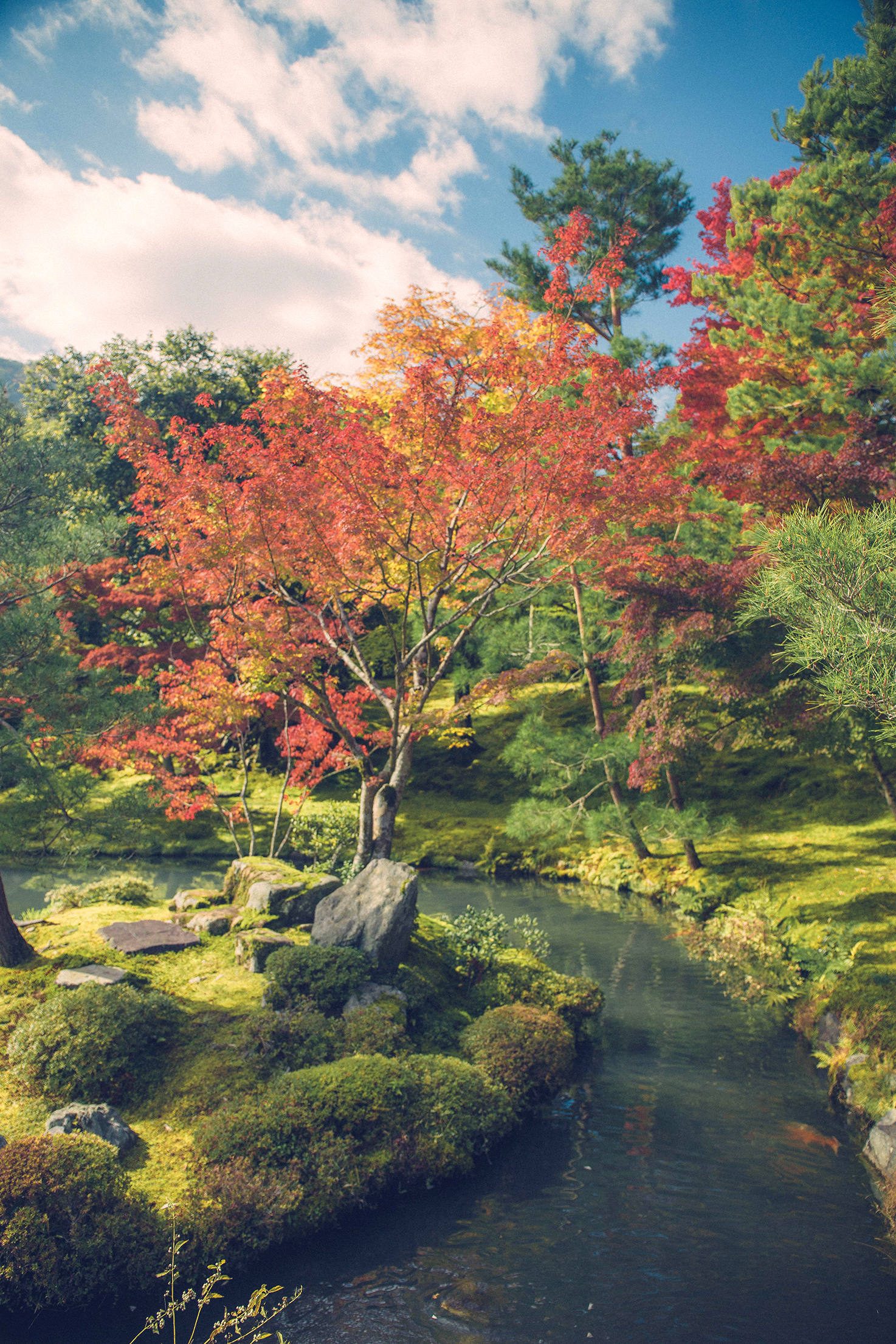岚山最惬意的就是不管禅院或民房,到处都如斯古色古香、禅意浓厚,再配上鲜红枫叶,偶尔些许金黄银杏点缀……;枫叶是日本人传统审美中不可或缺的一部分,因此,在种植枫树的时候,庭院的布局就已经体现出审美、和谐、意境统一,创造出天人合一的融合美。