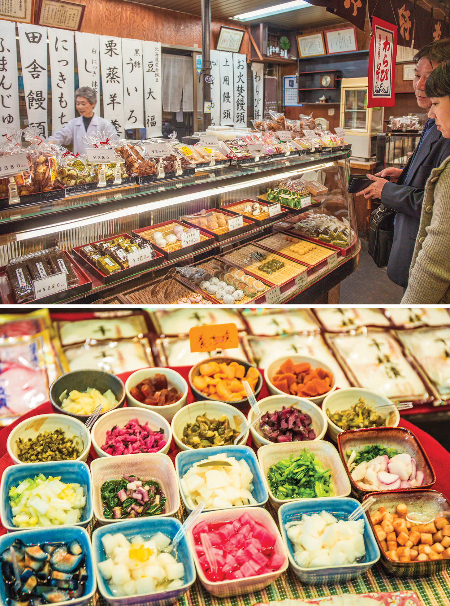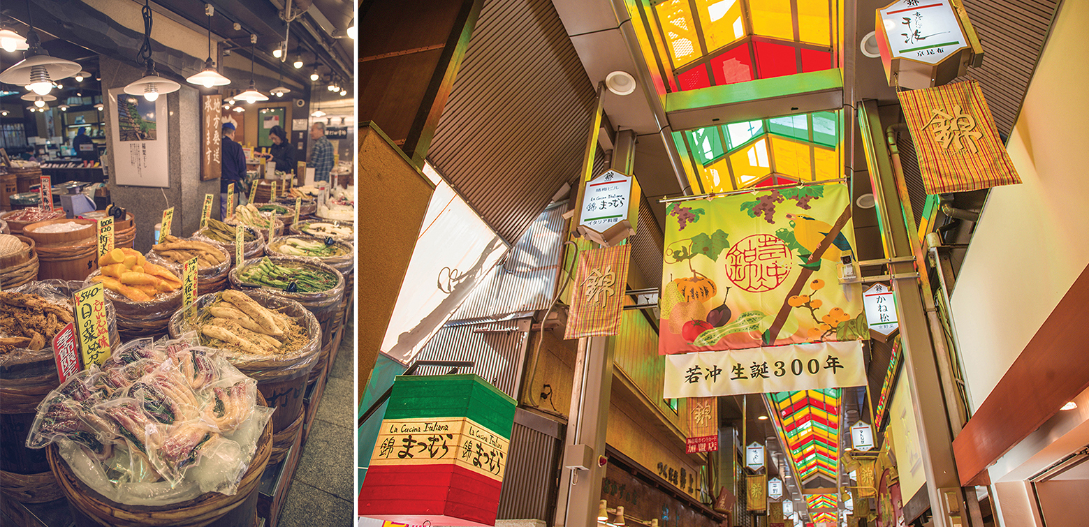 锦市场又称为“京都后厨房”,是拱廊商店街,因此下雨天也不用害怕。目前有超过120家各种各样的店铺在锦小路通两侧狭窄地排列着。很多店都提供试吃服务,店员和气又礼貌;小清新的店面装潢也是这里的一大特色,所有的特色小吃应有尽有。