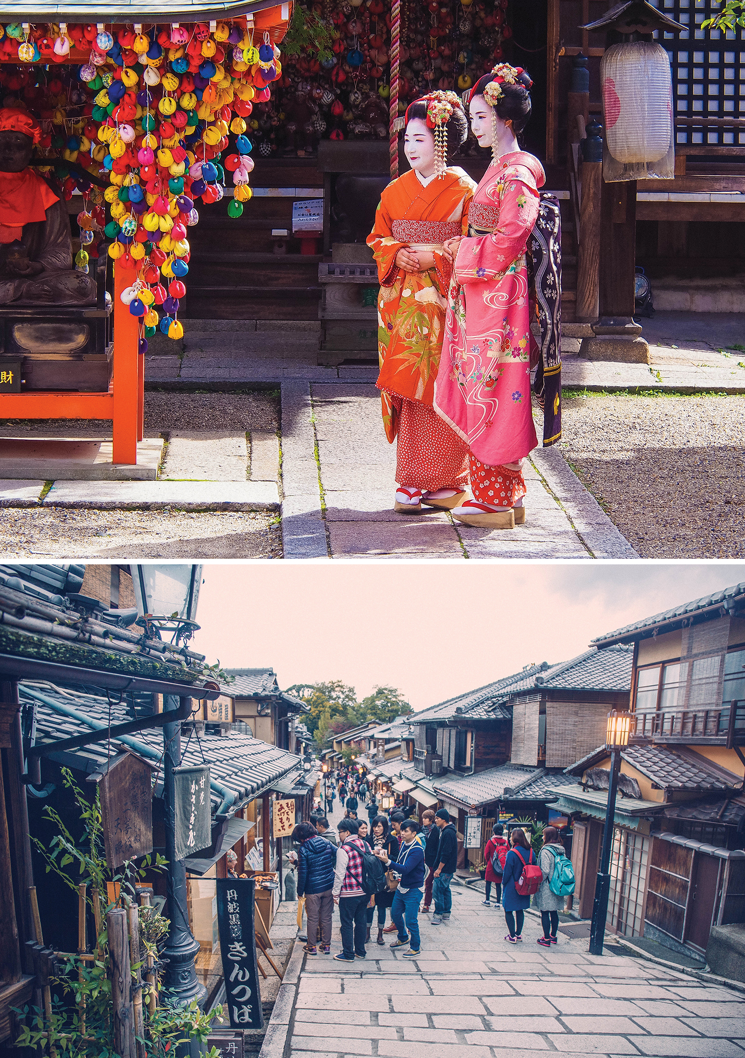 清水寺旁的祇园一带,周边都是古街旧户,其中的“花见小路”乃著名的古老花街,上世纪60年代这里集聚了为数近千的艺伎,至今仍保存着数十位艺伎导师进行着传统茶道、花道、古琴、雅乐、文乐等培训。