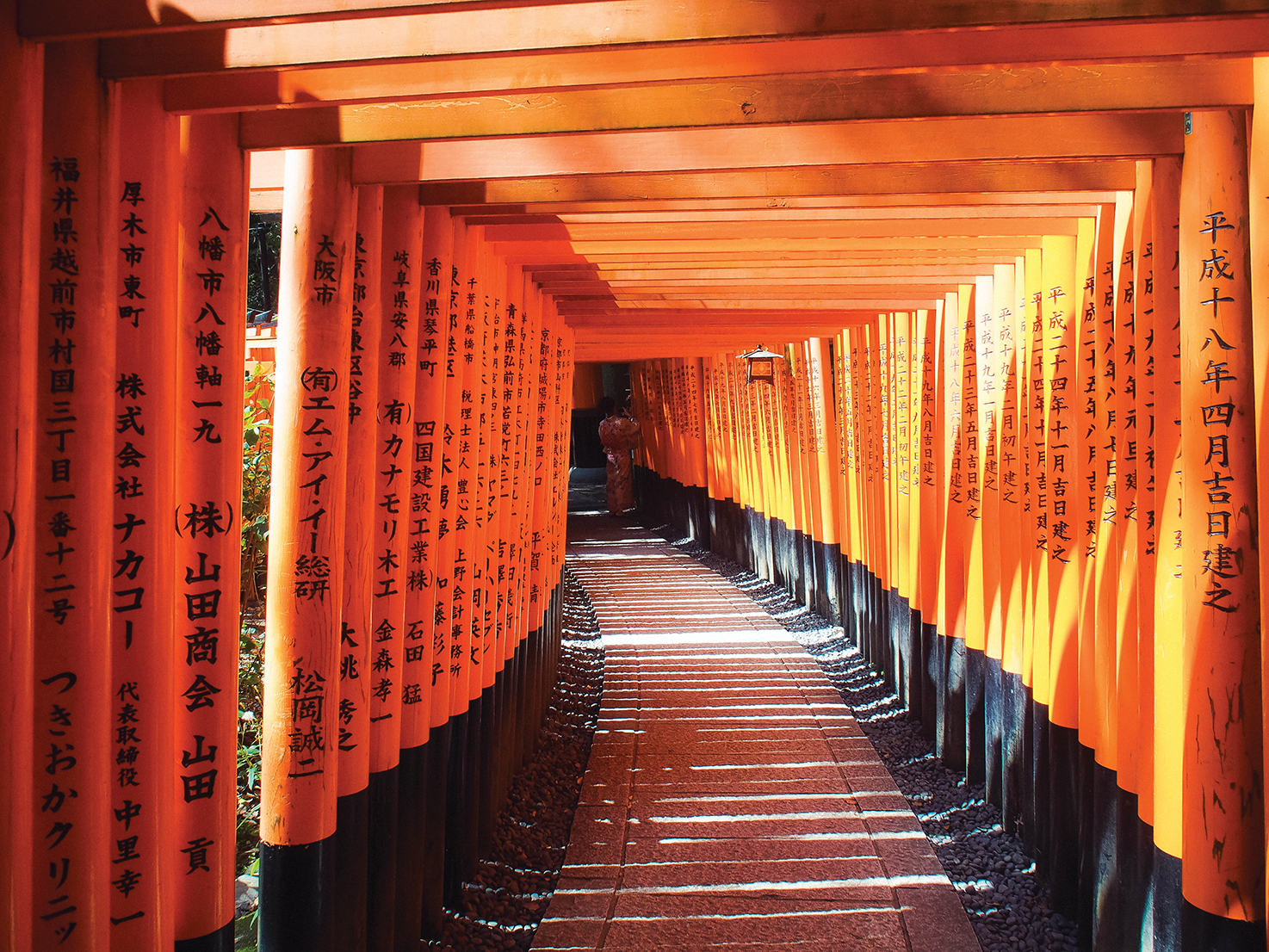走进这个层层叠叠橘红色的隧道感觉就像穿越到另一个世界;鸟居从山脚一路建到山上,若要全程走完至少需要3个半小时。