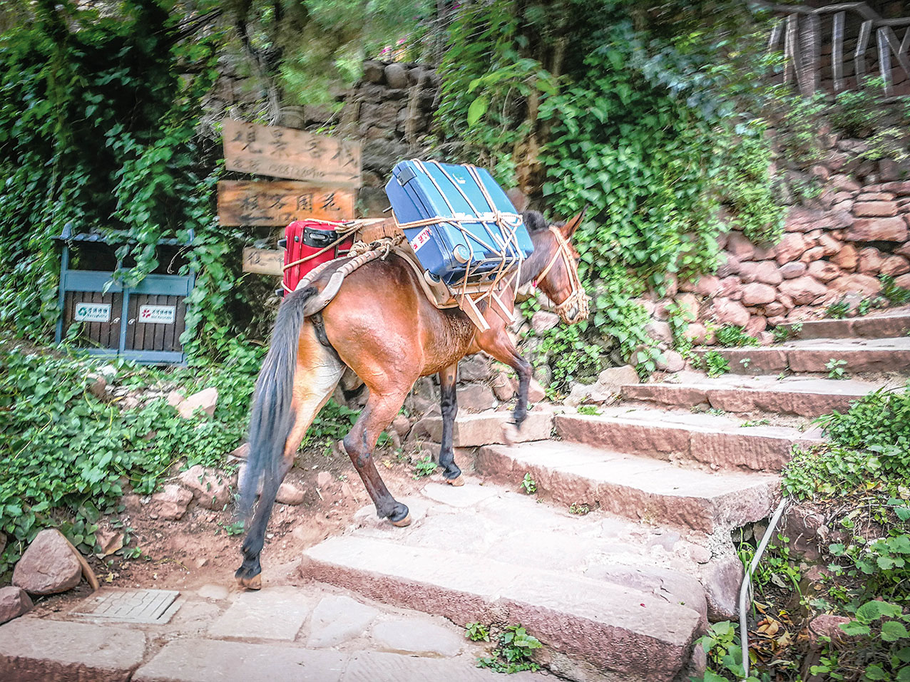 爬着爬着远处转来阵阵马蹄声,马上联想到“我达达的马蹄是美丽的错误,我不是归人,是个过客……”诗人郑愁予的“错误”,原来眼前迎来的不是马是骡子,是勤劳的诺邓村民们主要的务农工具,可以犁地可以驼东西。