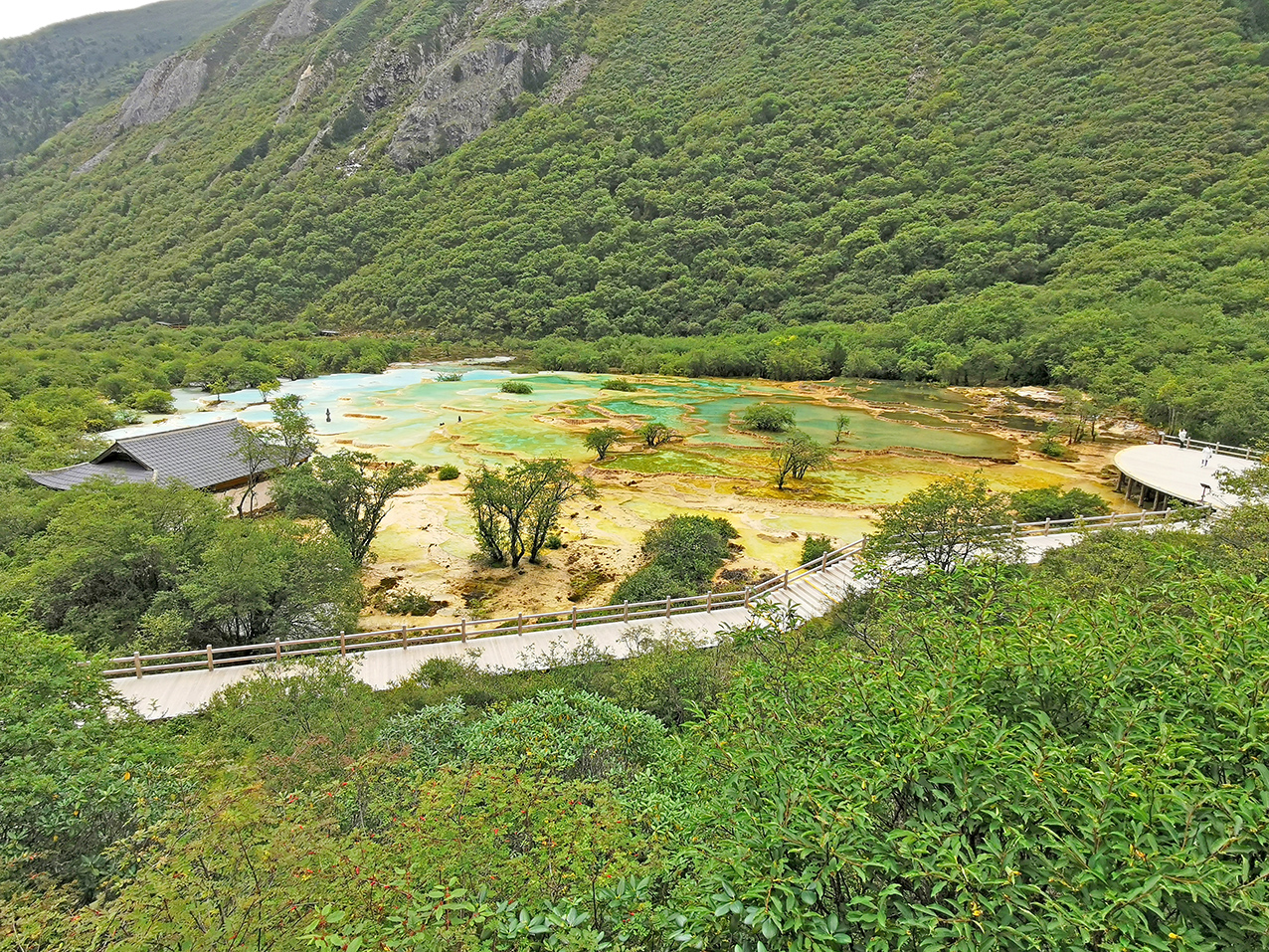 世界自然遗产的黄龙堪称人间仙境,享有“人间瑶池”之称。黄龙多为冰蚀地貌,气势磅礴,雄伟壮观。峡谷空间多变,崖峰峻峭,水景丰富,植被繁茂。作为这趟最后的旅游景点,那层叠相连的大片彩池群,绘出了黄龙奇观的第一幅天然图画,给甘南之旅增添了不少分数。