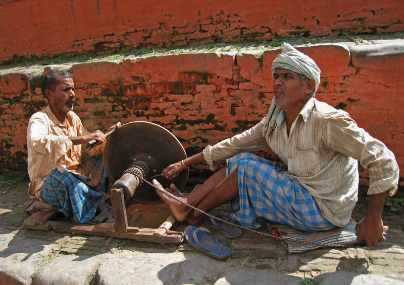 一点都没问题。神祗数目虽多,在尼泊尔的兴都教甚至连佛教密宗也都吸纳包揽了,但这里整个拜神大气氛却显得极至和谐良好。每天,阳光大早升起,照耀全城,铎巴广场上处处庙宇、寺院、浮屠、佛碑,以及街上所有角落的神祗,都融入一片洋洋洒洒大同世界般的悠然妙相里。不同阶级的善男信女,大清早就向自家神祗诚心膜拜,铎巴广场的上空,袅袅烟雾,像众神也起身一起下来吃早餐的样子。